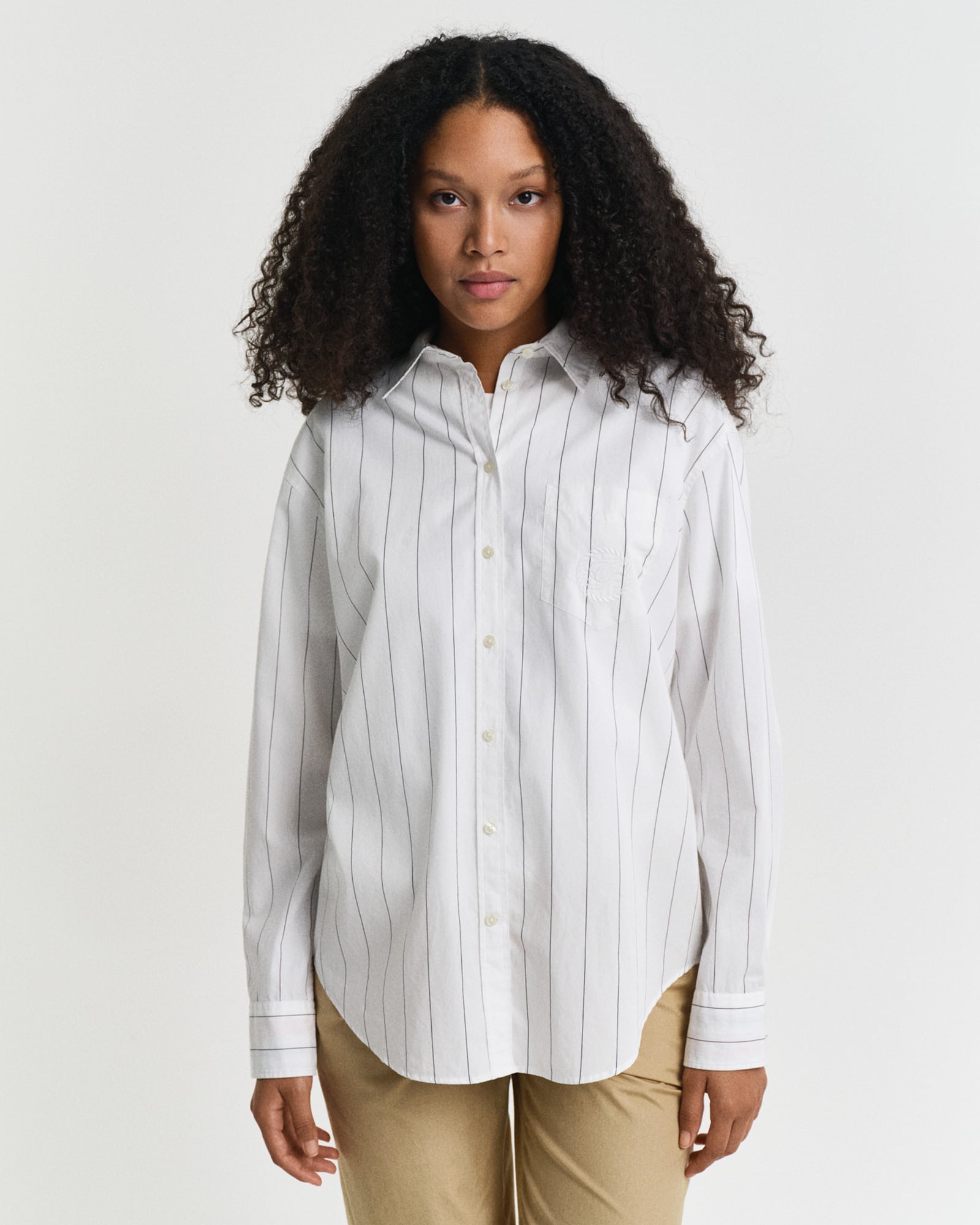 GANT Kadın Beyaz Relaxed Fit Klasik Yaka Çizgili Gömlek