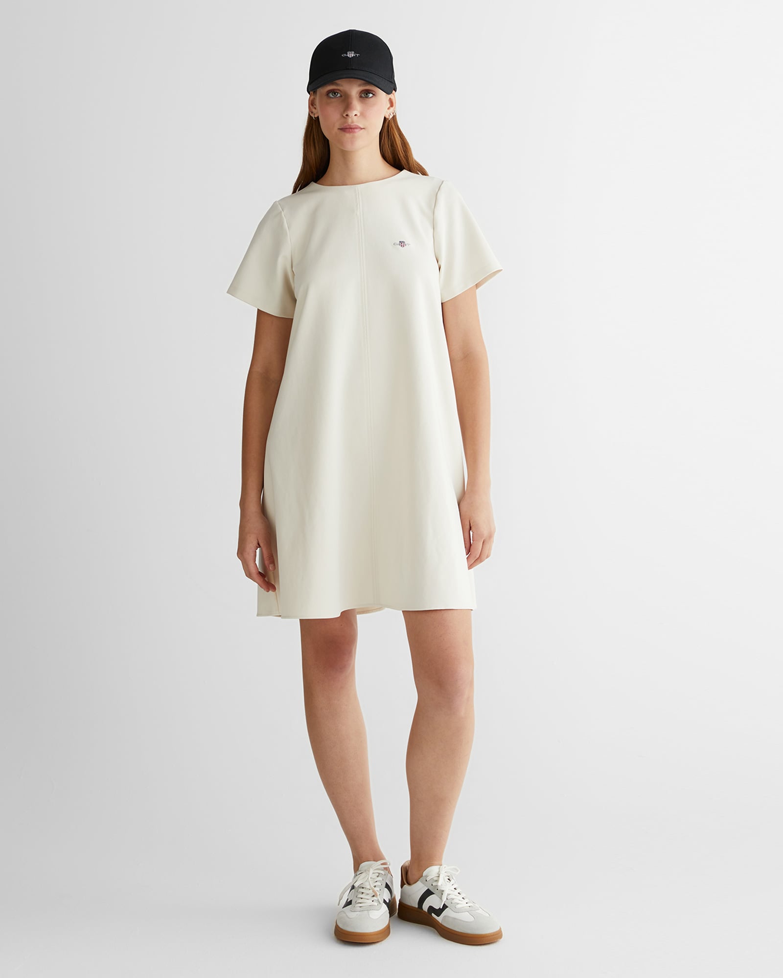 GANT elbise, modern kesimi ve zarif detaylarıyla günlük stilinize şıklık katıyor. Hafif ve nefes alabilen kumaşı sayesinde gün boyu konfor sunarken geniş kesimi ile rahat ve özgür bir duruş sağlıyor. Omuz kısmında yer alan detayları tasarıma dinamik bir hava katarken göğüs kısmındaki zarif GANT logosu sofistike bir dokunuş ekliyor. Akıcı siluetiyle hareket özgürlüğü sunan bu model, hem casual hem de şık kombinlere kolayca uyum sağlayarak stilinizi tamamlıyor. Sneaker, sandalet veya topuklu ayakkabılarla kombinlenerek her ortamda fark yaratmanızı sağlayacak çok yönlü bir tasarım sunuyor.