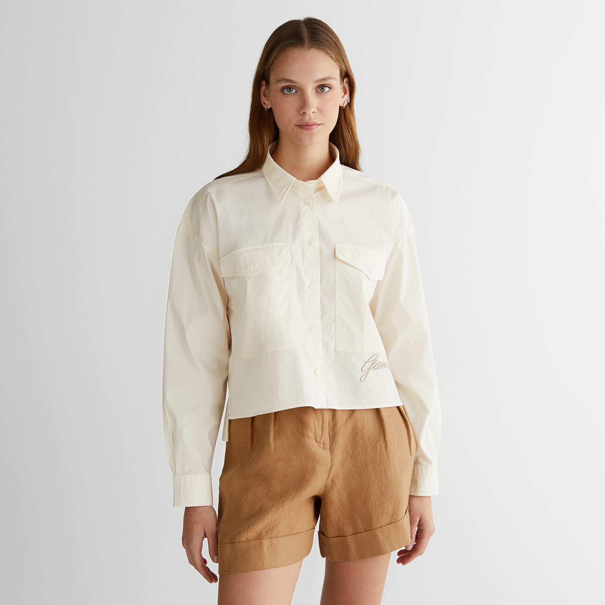 GANT gömlek, şık ve modern tasarımıyla günlük stilinize güçlü bir dokunuş katıyor. Rahat kesimi sayesinde özgür hareket imkanı sağlarken dayanıklı kumaşı ile hem konfor hem de şıklığı bir arada sunuyor. Klasik yaka detayı zamansız bir görünüm sağlıyor ve metal düğme kapamalı tasarımı modele modern ve dinamik bir hava katıyor. Ön kısımda yer alan kapaklı büyük cepler gömleğe fonksiyonel bir detay kazandırıyor ve göğüs kısmındaki zarif GANT logosu sofistike bir dokunuş ekliyor. Cropped kesimiyle jean ve şortlarla mükemmel uyum sağlayarak her ortamda şıklığınızı tamamlayan bu model, casual ve şehir stilinin vazgeçilmez parçalarından biri oluyor.