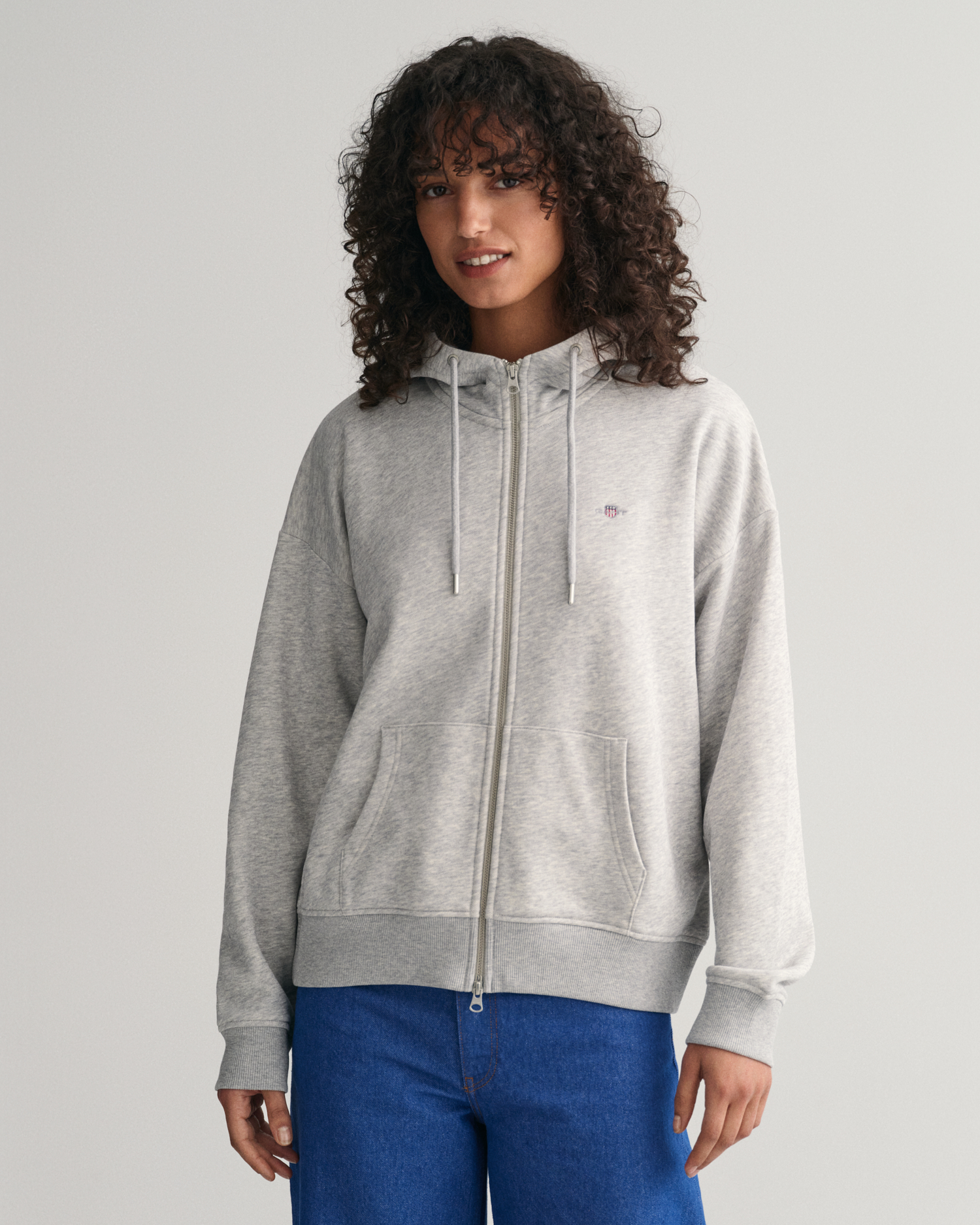 Göğüs kısmında küçük ölçekli bir kalkan logosu nakışı bulunan bu kapüşonlu sweatshirt, preppy mirasımızı çağdaş sokak modasıyla birleştiriyor. Fermuarlı ön kısmı ve ön yama cebi ile birlikte, bu pamuklu polar karışımından yapılan jersey kapüşonlu sweatshirt, yıl boyunca giymek için tasarlanmıştır.