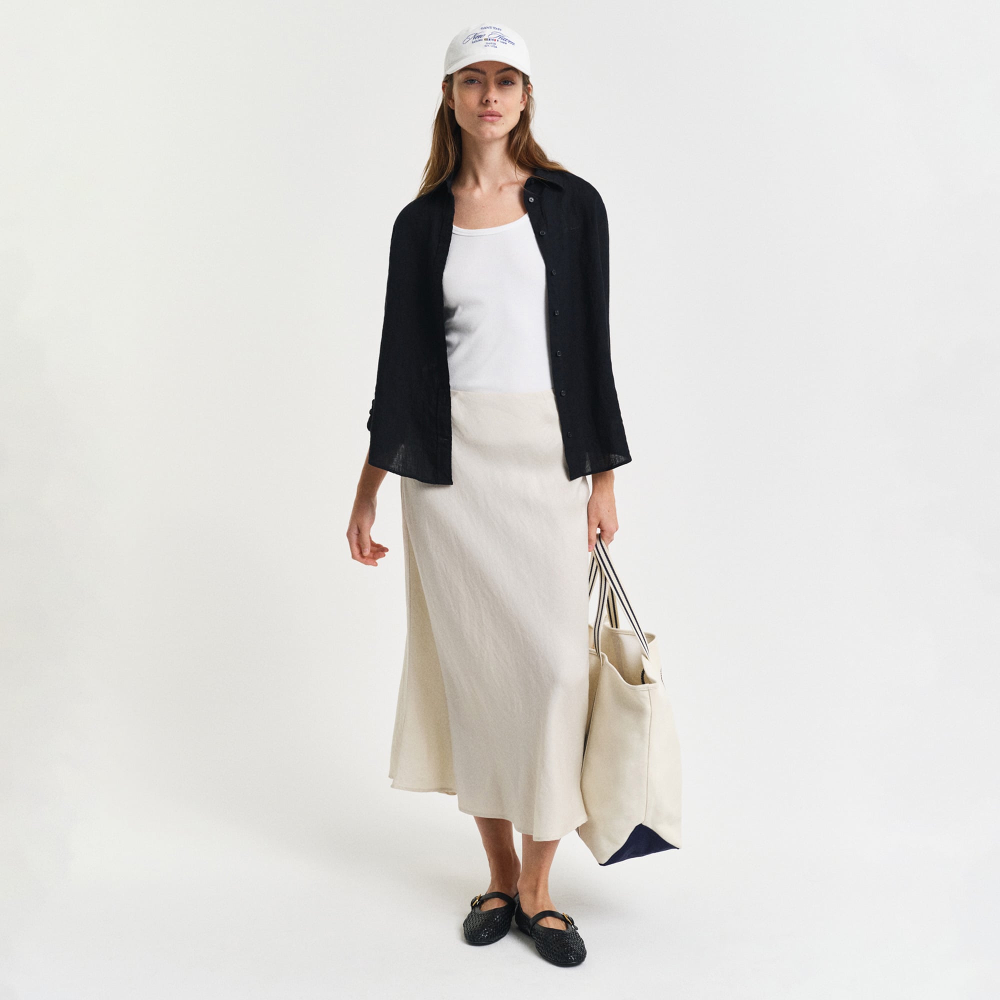 Zamansız şıklığıyla öne çıkan bu GANT midi etek, sade ve sofistike tasarımıyla her kombine kolayca uyum sağlıyor. Akıcı ve hafif yapısıyla gün boyu konfor sunarken yumuşak dokusu sayesinde vücuda zarifçe oturuyor. Bel kısmındaki düz formu minimalist bir görünüm sağlarken hafif genişleyen kesimi hareket özgürlüğü sunuyor. Günlük stillerden özel davet kombinlerine kadar farklı parçalarla rahatlıkla tamamlanabilen bu etek, modern ve şık bir stilin anahtarı.