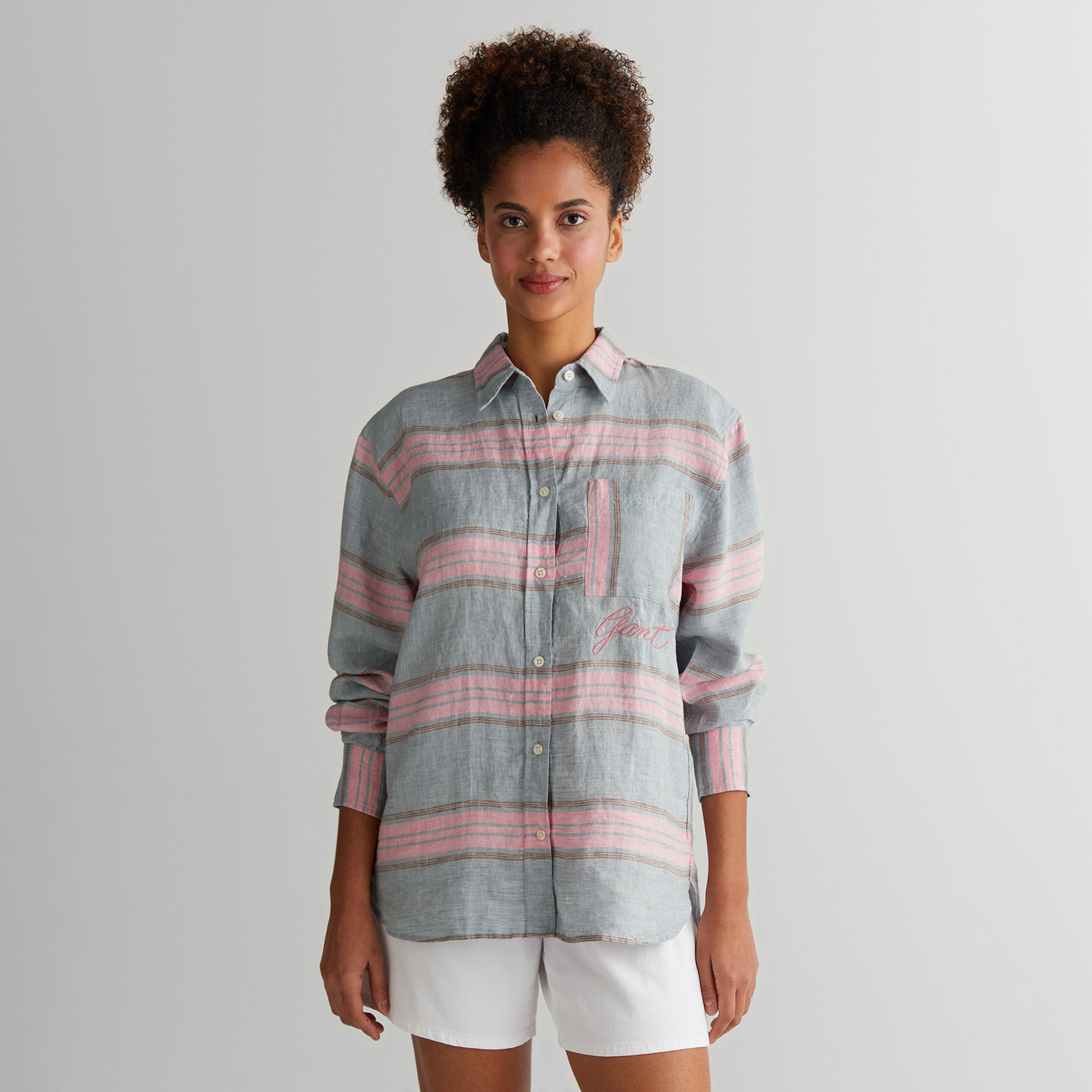 GANT gömlek, canlı renkleri ve çizgili deseniyle zamansız şıklığı modern bir dokunuşla buluşturuyor. Hafif ve nefes alabilen kumaşı sayesinde gün boyu konfor sağlıyor. Klasik yaka detayı zamansız bir görünüm katarken tam boy düğmeli ön kısmı sayesinde kolay kullanım imkanı sunuyor. Göğüs cebinde yer alan desenli detay ve zarif GANT logosu tasarıma sofistike bir hava katıyor. Yuvarlak etek kesimi ve geniş manşet detayları ile hareket özgürlüğü sunan bu model, jean ve chino pantolonlarla mükemmel uyum sağlayarak her ortamda stilinizi ön plana çıkarıyor.