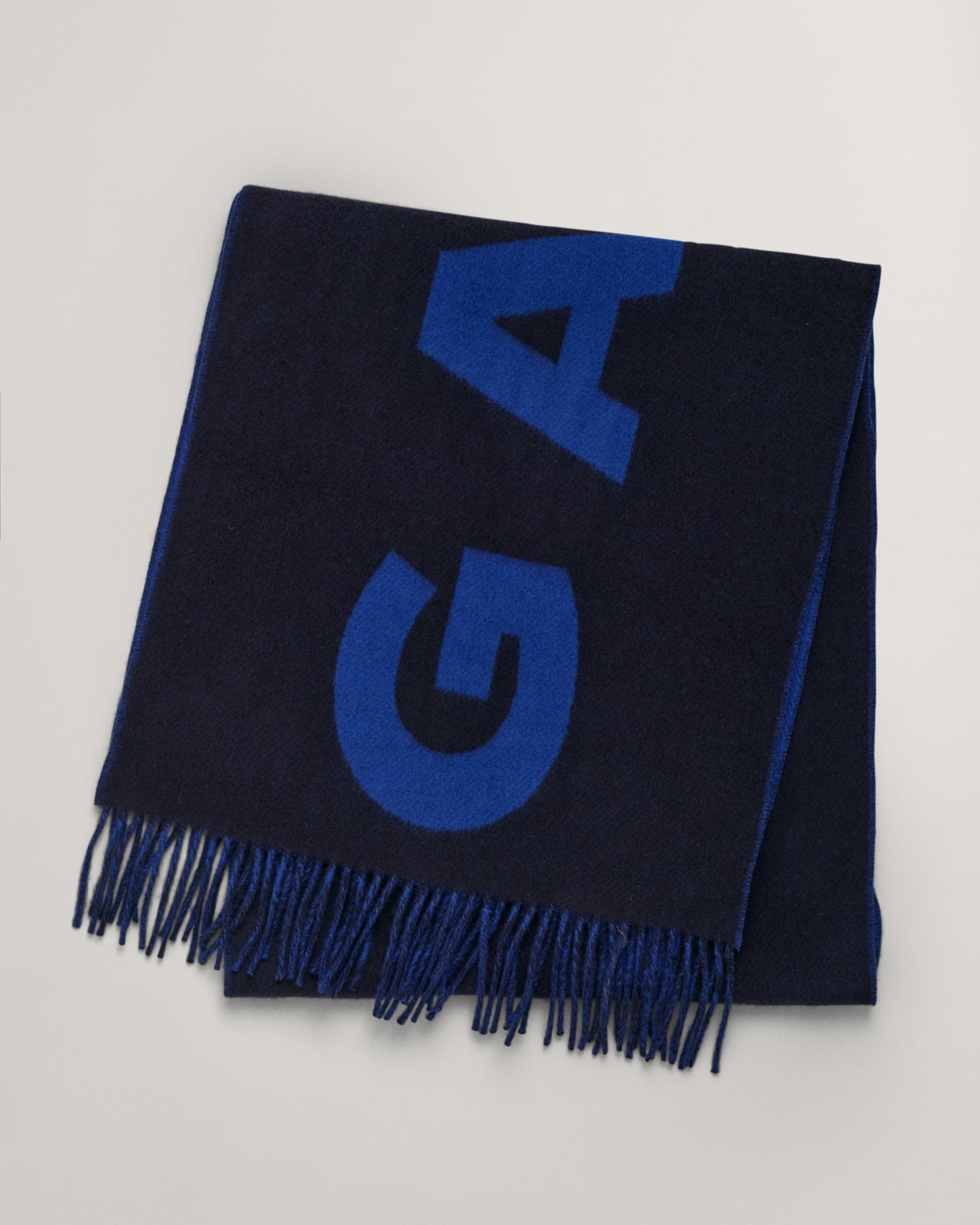 Üstün konfor için %100 yünden tasarlanmış olan bu jakar dokuma atkı, püsküllü kenarları ve büyük ölçekli kontrast GANT logosunu intarsia tekniğiyle sunmaktadır.
