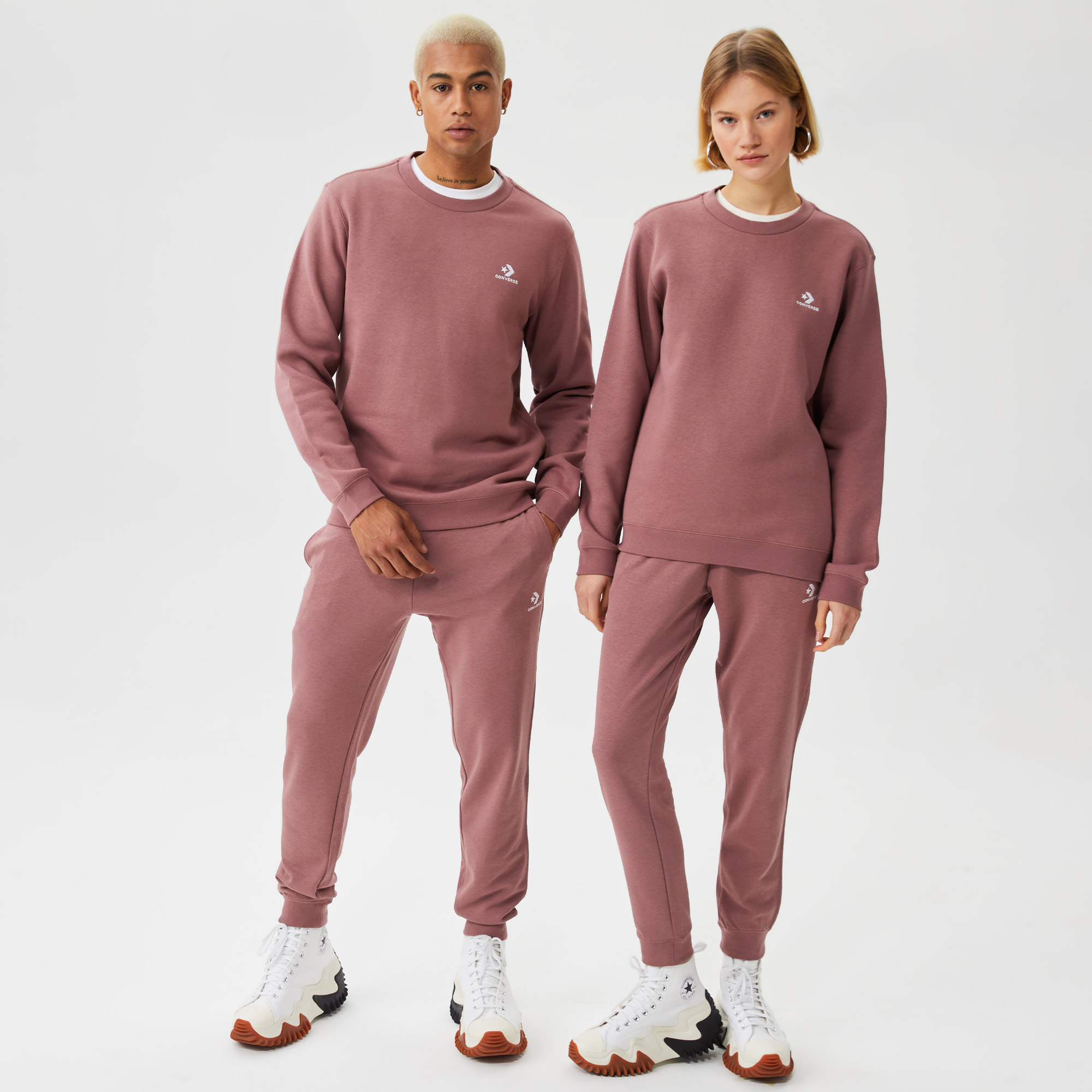 Converse Go-To Nakışlı Yıldız Chevron Eşofman Altı her gününü yumuşatan ve elastik bel bandından manşetli bileklere kadar rahatlık sağlayan French Terry ile güncellendi. Sol bacaktaki işlemeli Star Chevron, rahat görünüme dikkat çekici bir dokunuş katar.
