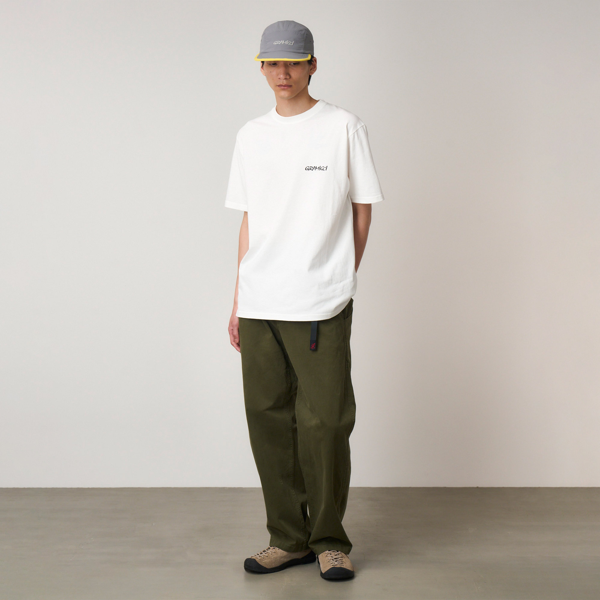 Gramicci Ice Axe Erkek Beyaz T-Shirt ile doğa ilhamlı stilini sade ve güçlü bir grafikle tamamlıyorsun; ön yüzündeki baskı sportif ruhu yansıtıyor