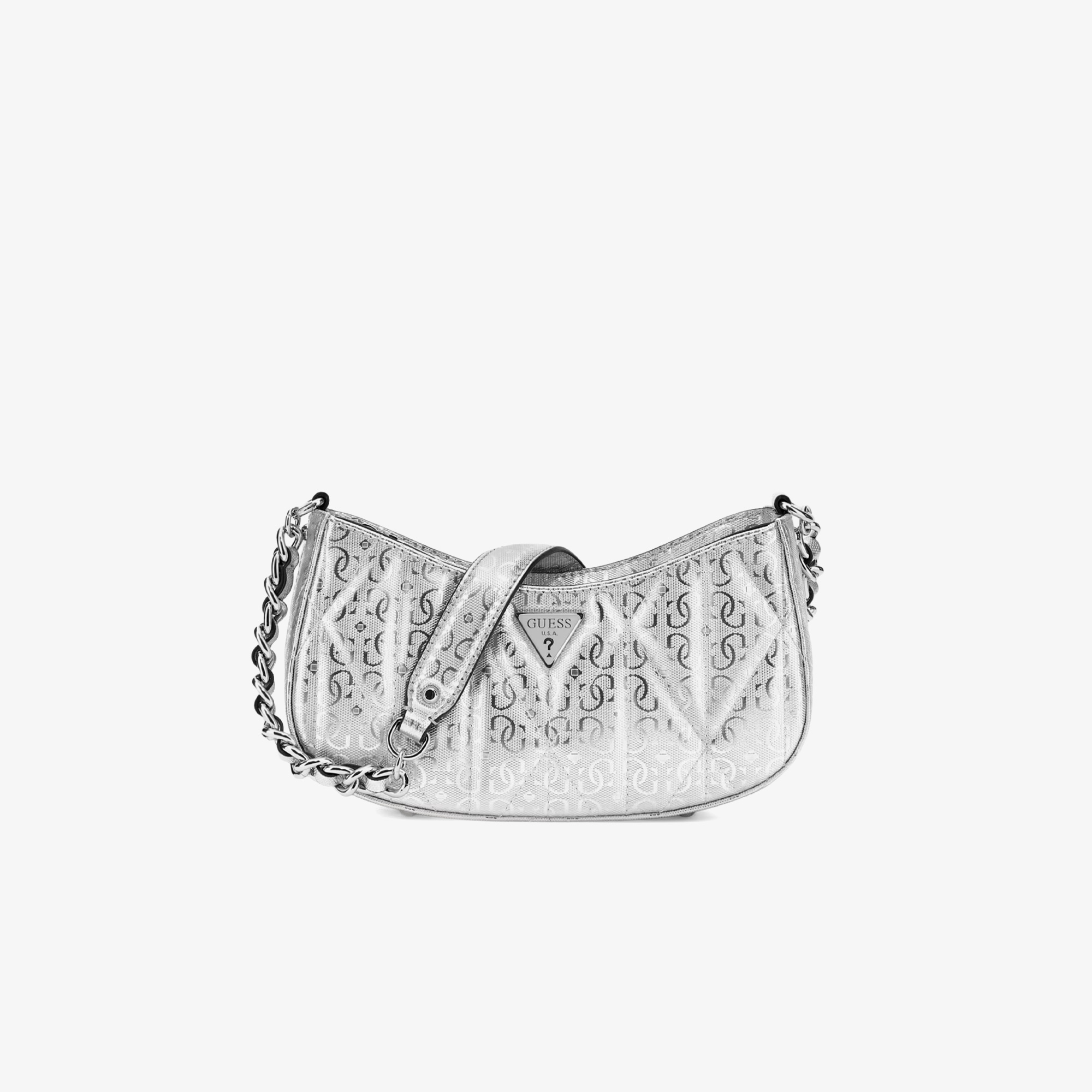 Guess Aldina Kadın Gri El Çantası, metalik gri tonuyla modern şıklığın en zarif halini sunuyor. Kompakt tasarımıyla günlük kullanımda konfor sağlarken, 4G logo baskısı ve parlak metal detaylarıyla dikkat çeker. Hem şehir kombinlerinde hem özel anlarda tarzına sofistike bir dokunuş katmak isteyenler için mükemmel bir seçim.