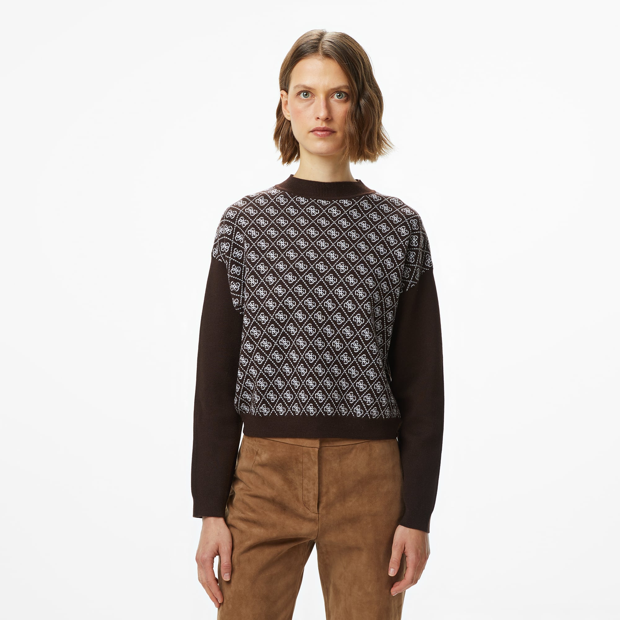 Guess Aubrey Yün Karışımlı Kadın Kahverengi Triko, soğuk havalarda seni sıcacık tutarken şık bir görünüm sunar.