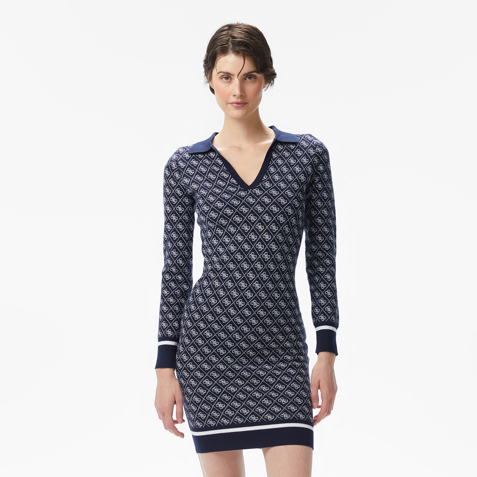 Guess Aubrey Yün Karışımlı Kadın Lacivert Elbise ile zarafeti ve konforu bir arada yaşayacaksın. Kış aylarının soğuk günlerinde bile stilinden ödün vermek istemeyen sen, bu elbiseyle hem sıcak kalacak hem de göz kamaştıracaksın. Lacivert rengiyle her ortama uyum sağlayan bu parça, günlük şıklığını ve özel anlarını taçlandıracak.