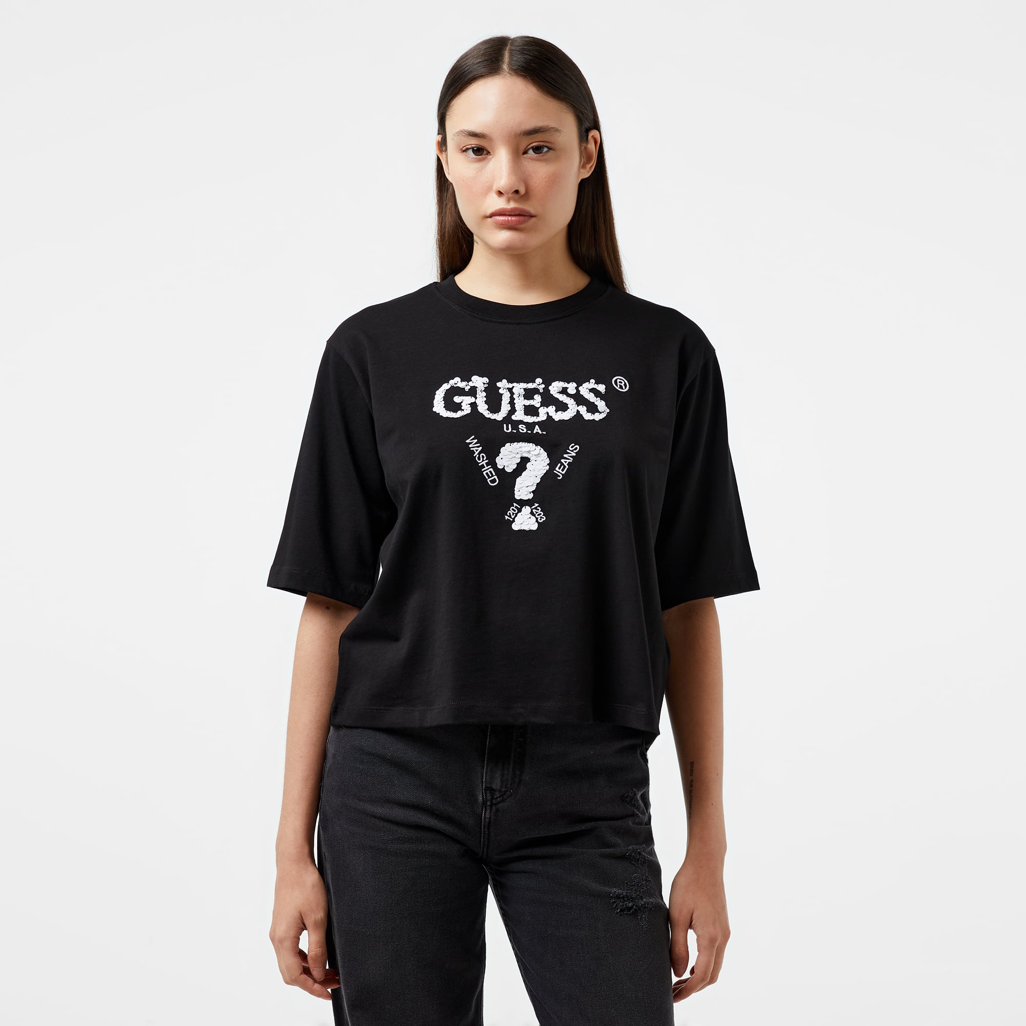 Guess Aurelie Boxy Mid Organic Stream Jersey 180 Kadın Siyah T-Shirt