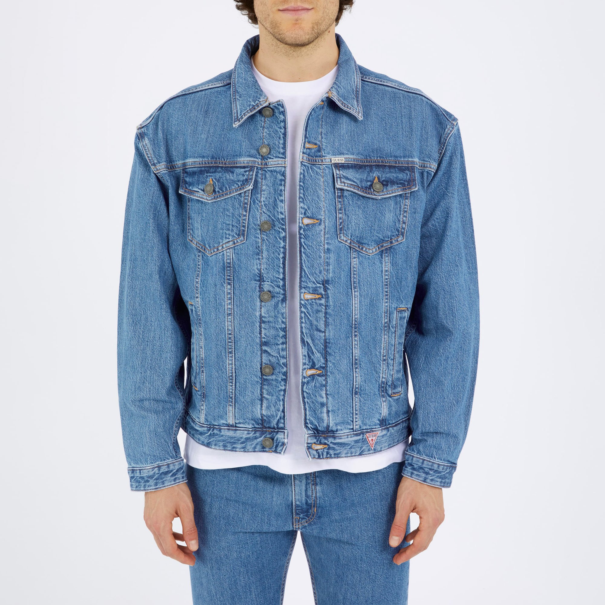 Guess Erkek Mavi Mont, modern kesimiyle her kombine kolayca uyum sağlar.