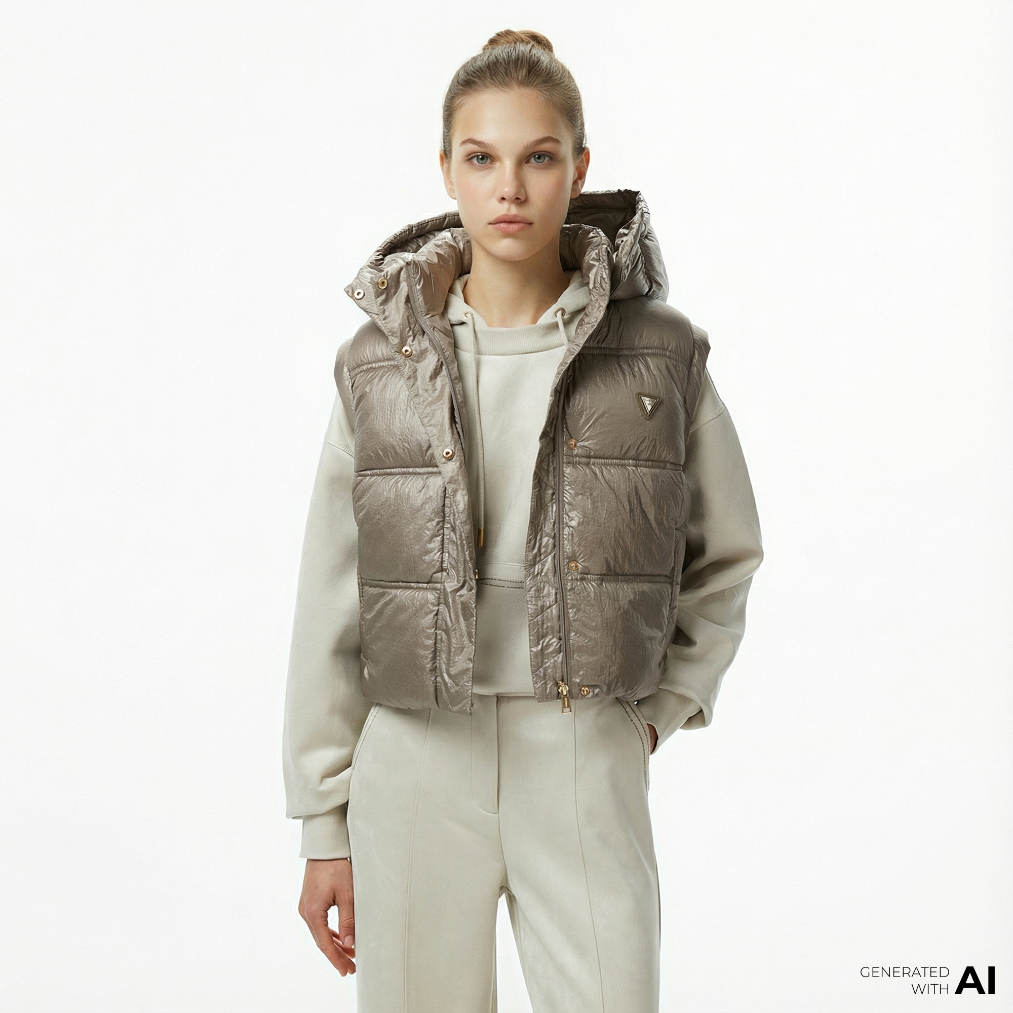 Guess Ernestine Kadın Kahverengi Yelek, her türlü hava koşulunda ekstra bir koruma katmanı sağlar ve stilini tamamlar.
