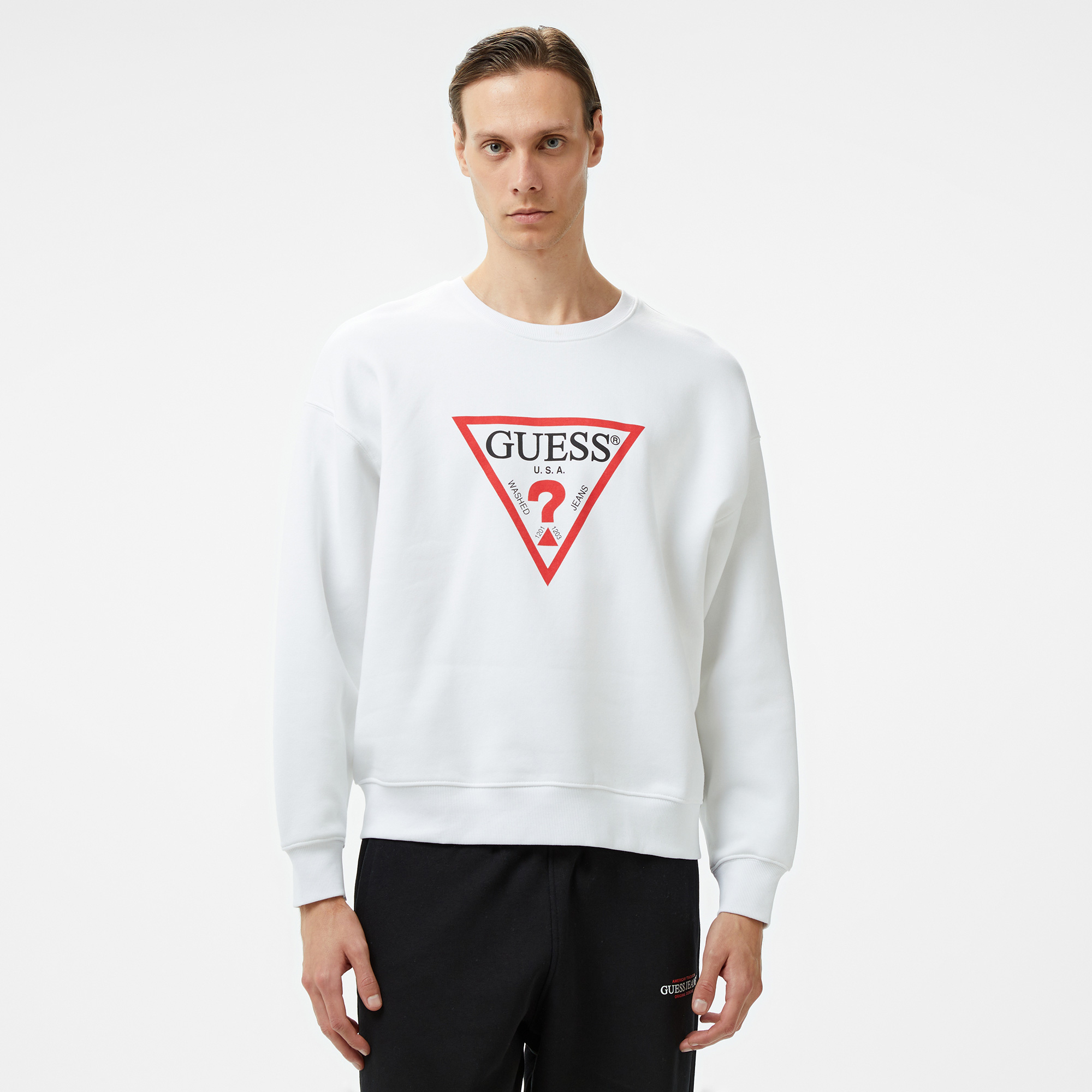 Guess Iconic Tria Organic 365 Erkek Beyaz Sweatshirt