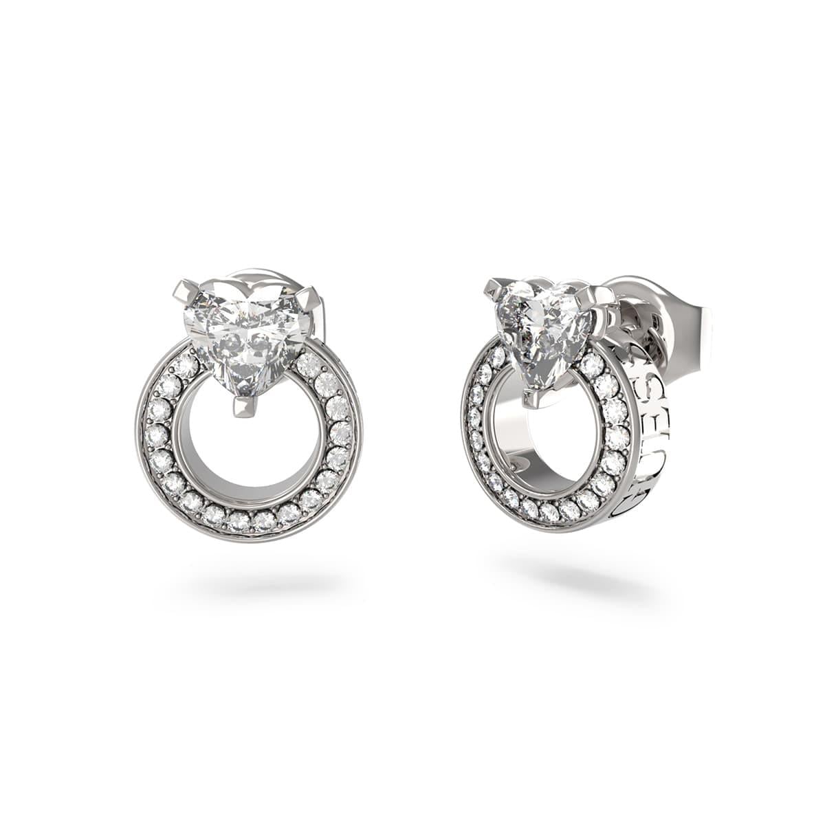 Metalik Gri Renk / Çelik Materyal / Taşlı / Kalp Takı Şekli / Küpe