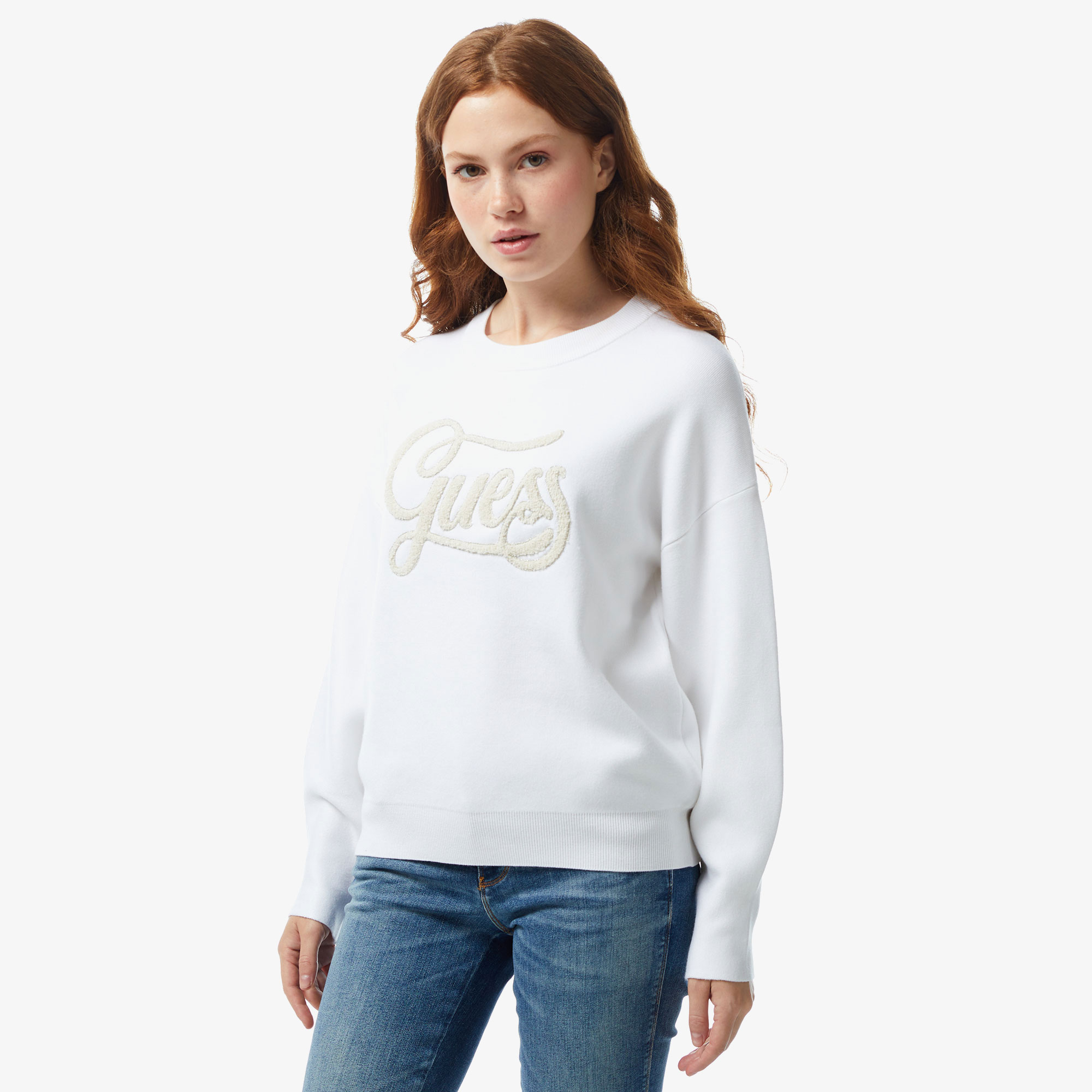 GUESS kadın triko ile gardırobuna zarafet ve konforu bir arada getir! Yumuşak dokusu, kaliteli kumaşı ve rahat kesimi ile bu triko senin için mükemmel bir seçim. Beyaz rengin sadeliği ve Guess logosunun şıklığı, günlük kombinlerinden özel anlarına kadar her yerde stilini öne çıkarır.