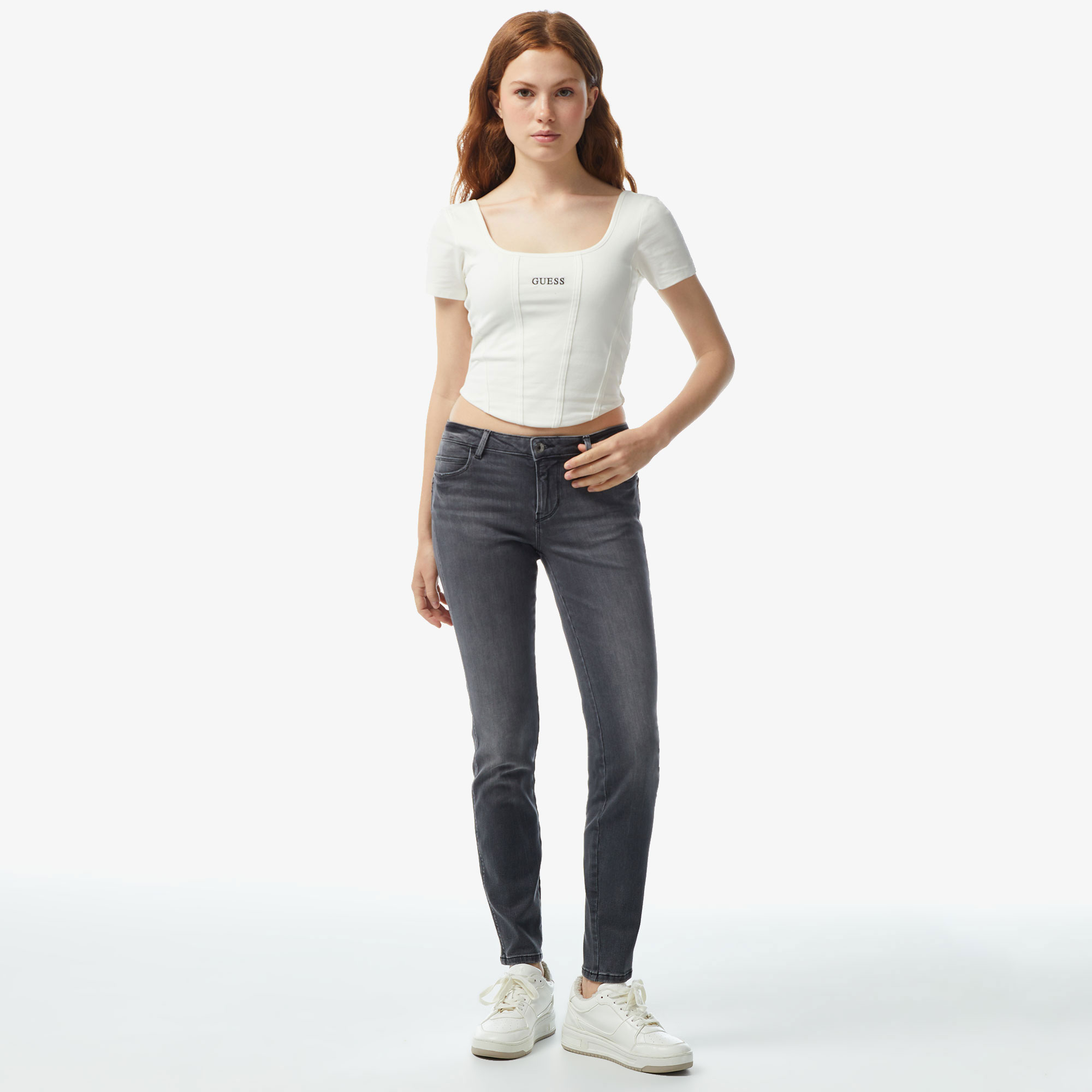 GUESS Kadın Denim ile tarzını bir üst seviyeye taşı! Bu kadın denim pantolon, modern kesimi ve şık tasarımıyla hem günlük kullanım hem de özel günler için mükemmel bir seçim. Yumuşak dokusuyla rahatlık sunarken, dar kesimi sayesinde vücut hatlarını zarif bir şekilde ortaya çıkarıyor. Şıklığı ve konforu bir arada bulabileceğin bu denim, dolabının vazgeçilmez parçalarından biri olmaya aday!