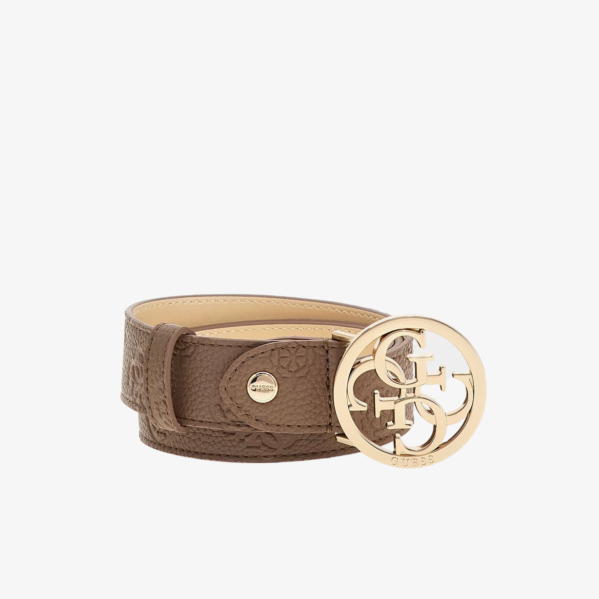 Altın tonlarındaki yuvarlak Guess logosu, kemere sofistike bir hava katıyor ve seni ön plana çıkarıyor.