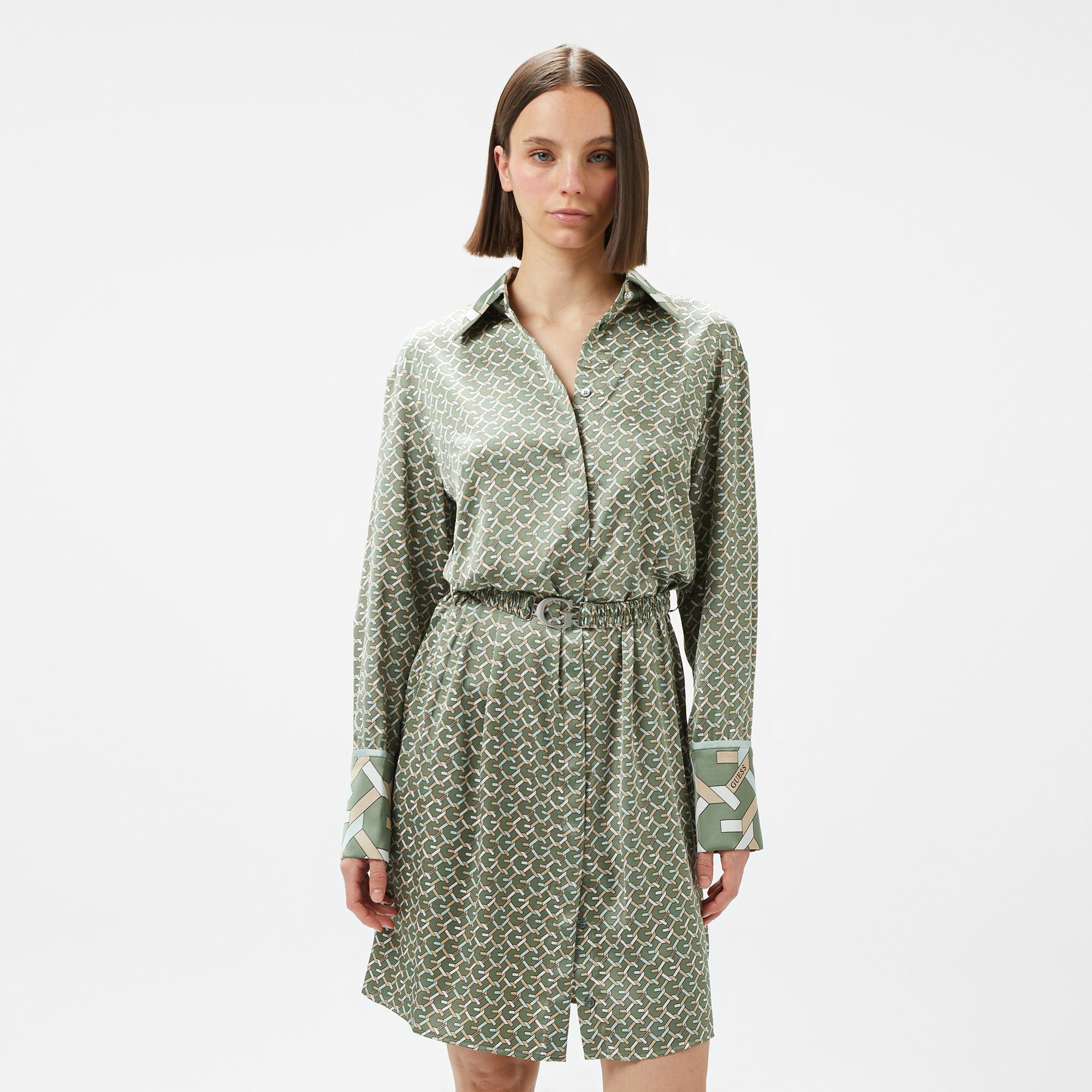 GUESS markasının şıklığını ve zarafetini taşıyan bu kadın elbise ile tarzını bir üst seviyeye çıkarabilirsin! Modern desenleri, beldeki kemer detayı ve rahat kesimi ile hem günlük kombinlerinde hem özel günlerinde tercih edebileceğin ideal bir parça. Saten dokusu sayesinde cildine yumuşak bir dokunuş sunarken, tasarımı ile göz kamaştırıcılığı garanti ediyor.