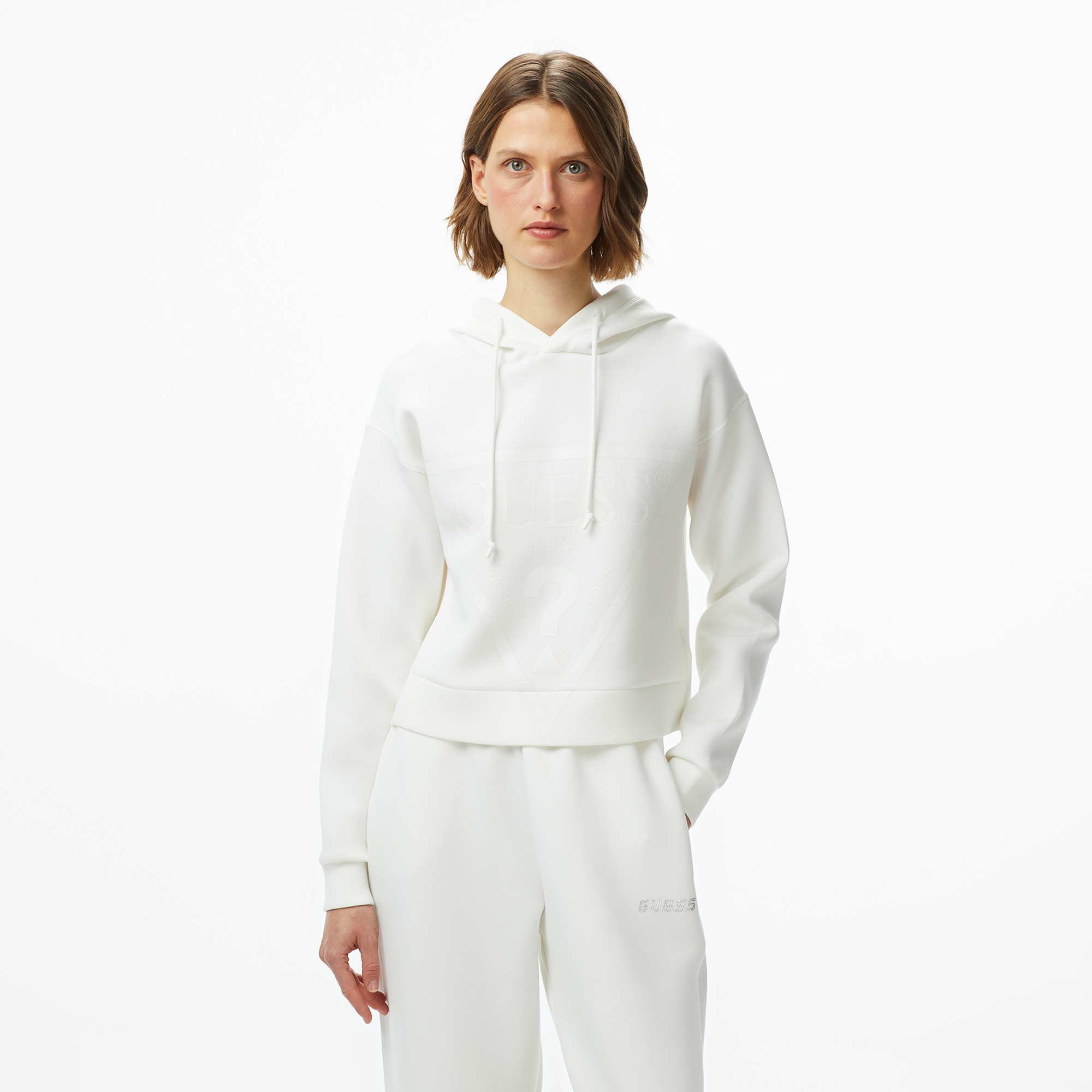 Guess New Alisa Hooded Kadın Beyaz Sweatshirt Özellikleri