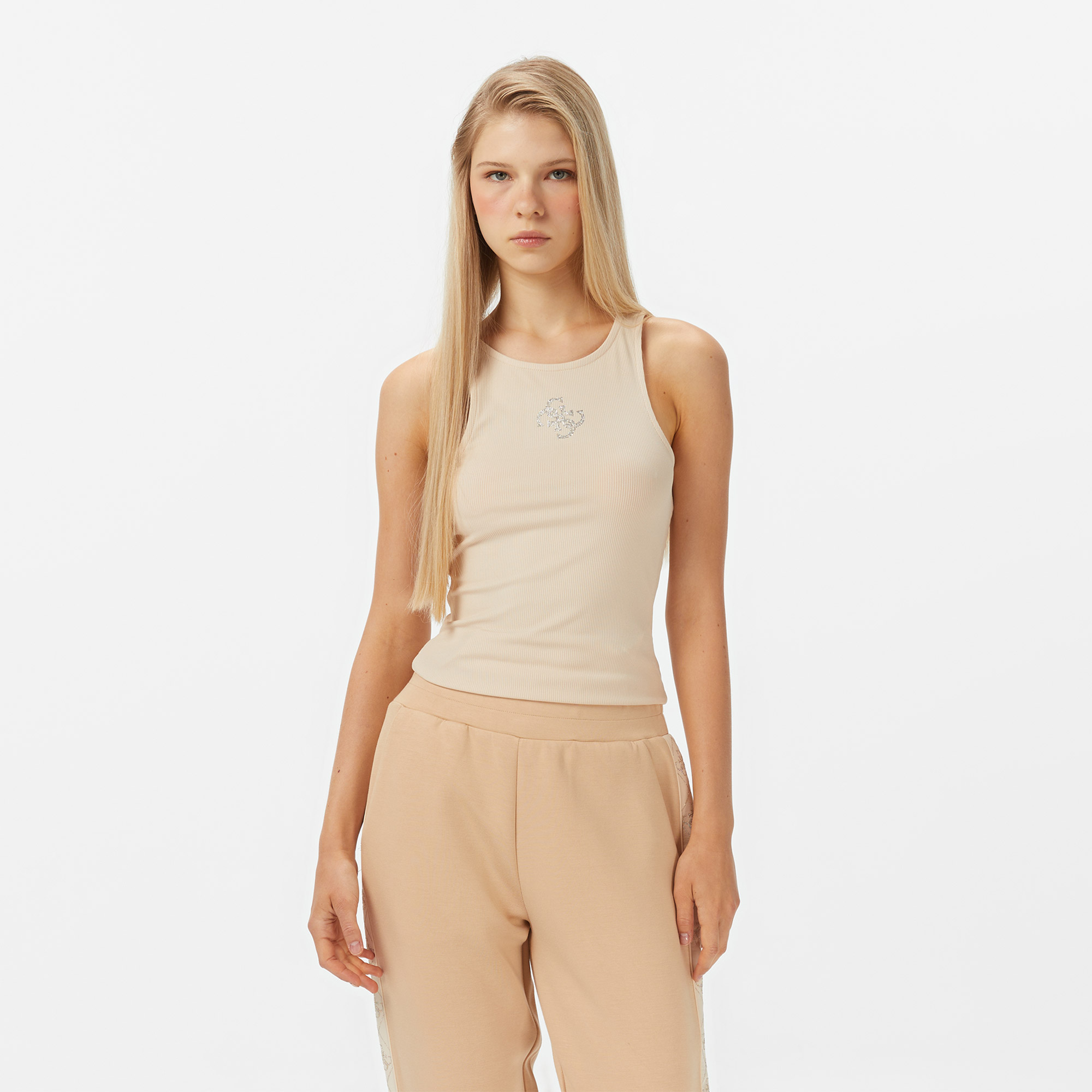 Guess New Round Kadın Krem Rengi Kolsuz T-Shirt, tenine nazikçe dokunan yumuşak kumaşıyla gün boyu konfor sunar.