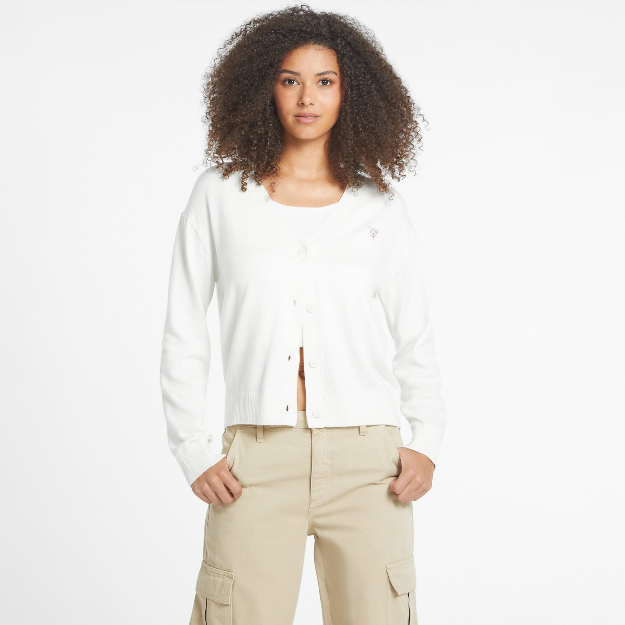 GUESS Kadın Hırka, zarif ve modern tarzı bir araya getirerek gardırobuna şıklık katıyor. Bu beyaz hırka, günlük kombinlerinde rahatlık ve stil arayanlar için mükemmel bir tercih. Düğmeli tasarımıyla kolayca giyilebilir ve çıkartılabilir, yumuşak dokusu sayesinde kendini her zaman konforlu hissedeceksin.