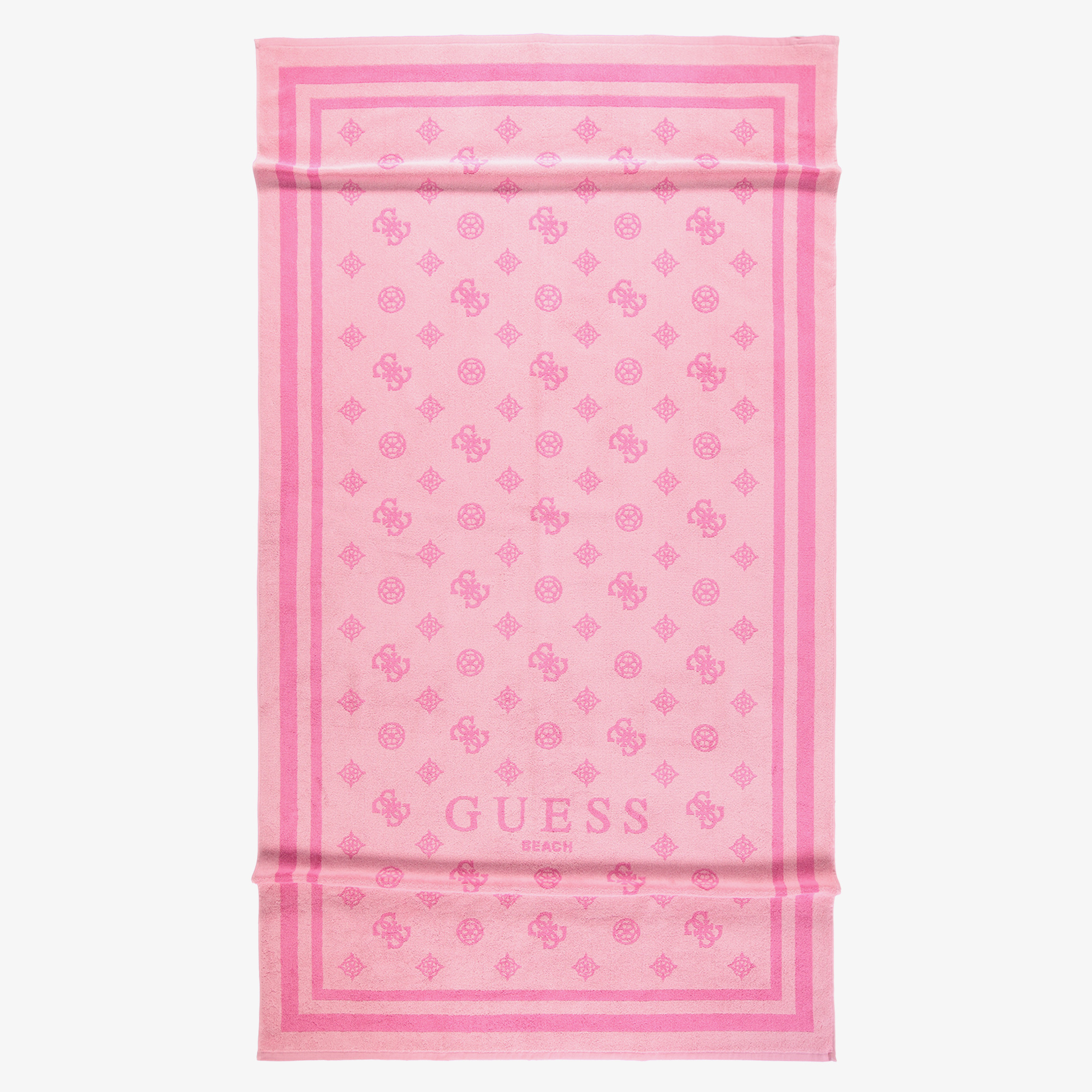 Guess Towel Jacquard Lux Sponge Unisex Pembe Plaj Havlusu, seni plajda veya havuz başında tarzınla öne çıkaracak.