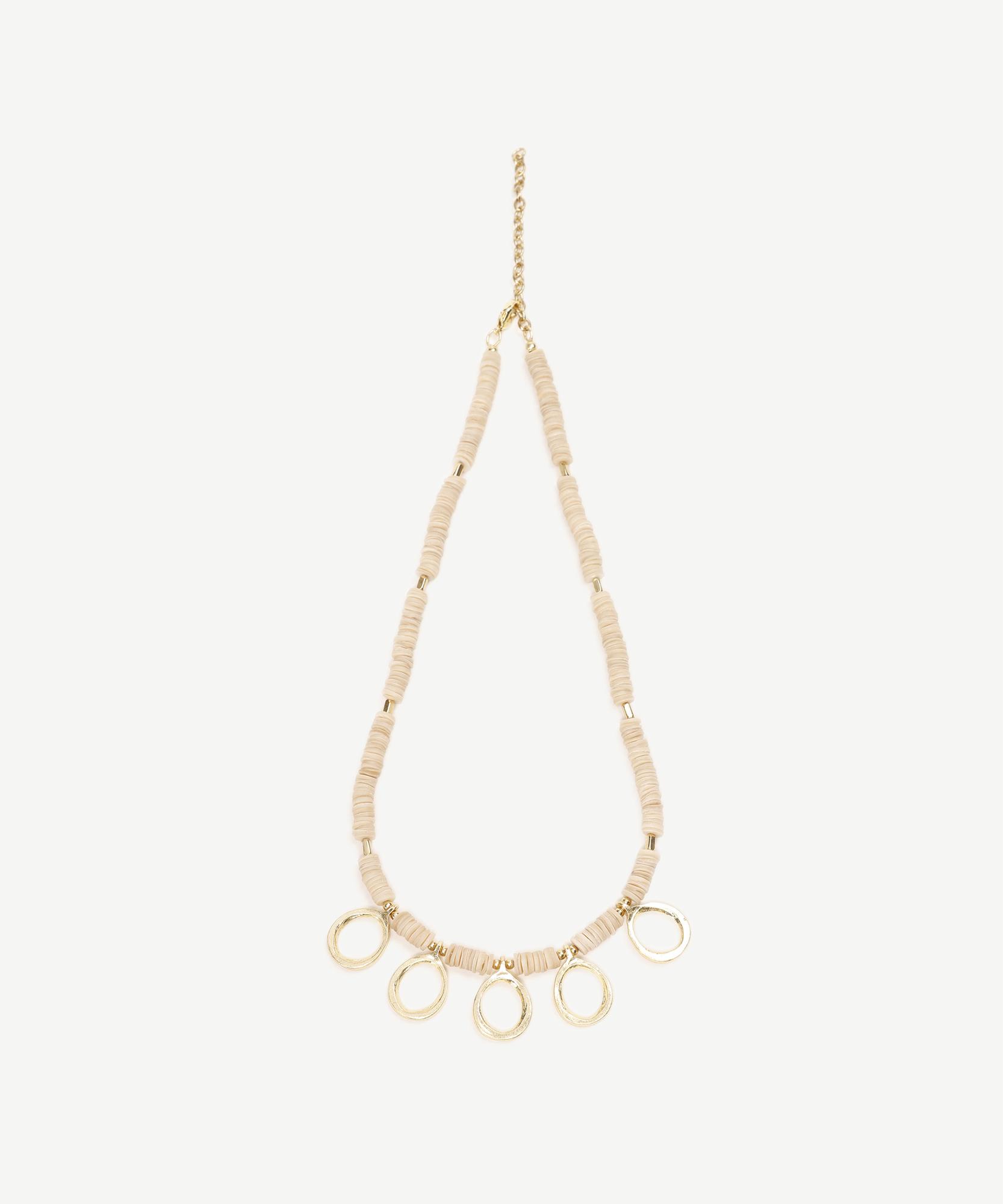 Modern ve zarif tasarımıyla dikkat çeken bu kolye, günün her saati şıklığınızı tamamlıyor. Altın rengi detayları ve sıra dışı formu ile göz alıcı bir görünüm sunuyor. İster günlük kombinlerinizde ister özel davetlerde kullanabileceğiniz bu aksesuar, tarzınıza sofistike bir hava katıyor.