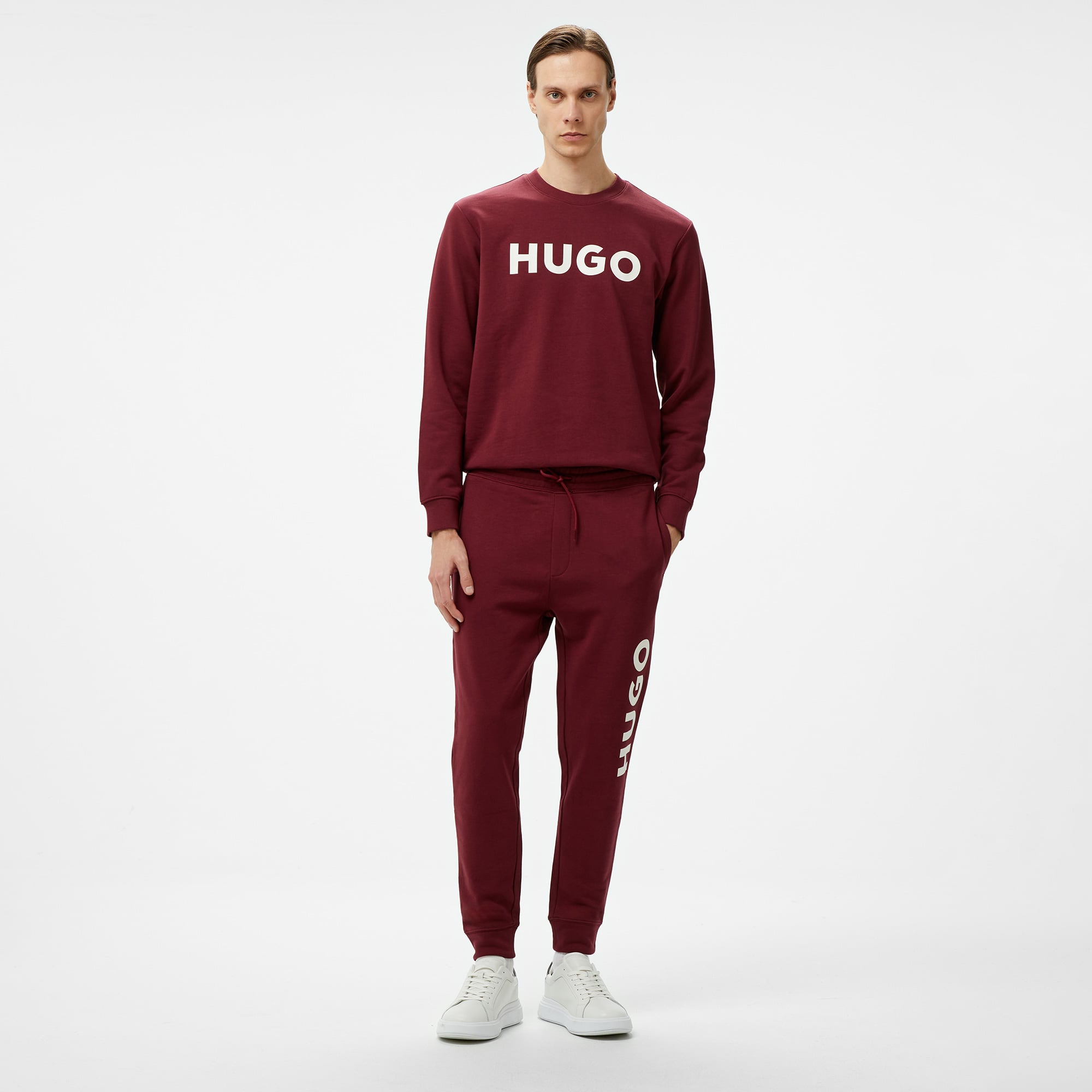 Hugo Dutschi Erkek Bordo Eşofman Altı, dikkat çekici bordo rengi ve rahat kesimiyle hem sportif hem de günlük kombinlerin için harika bir tercih. Yumuşak kumaşıyla gün boyu konfor sağlar.