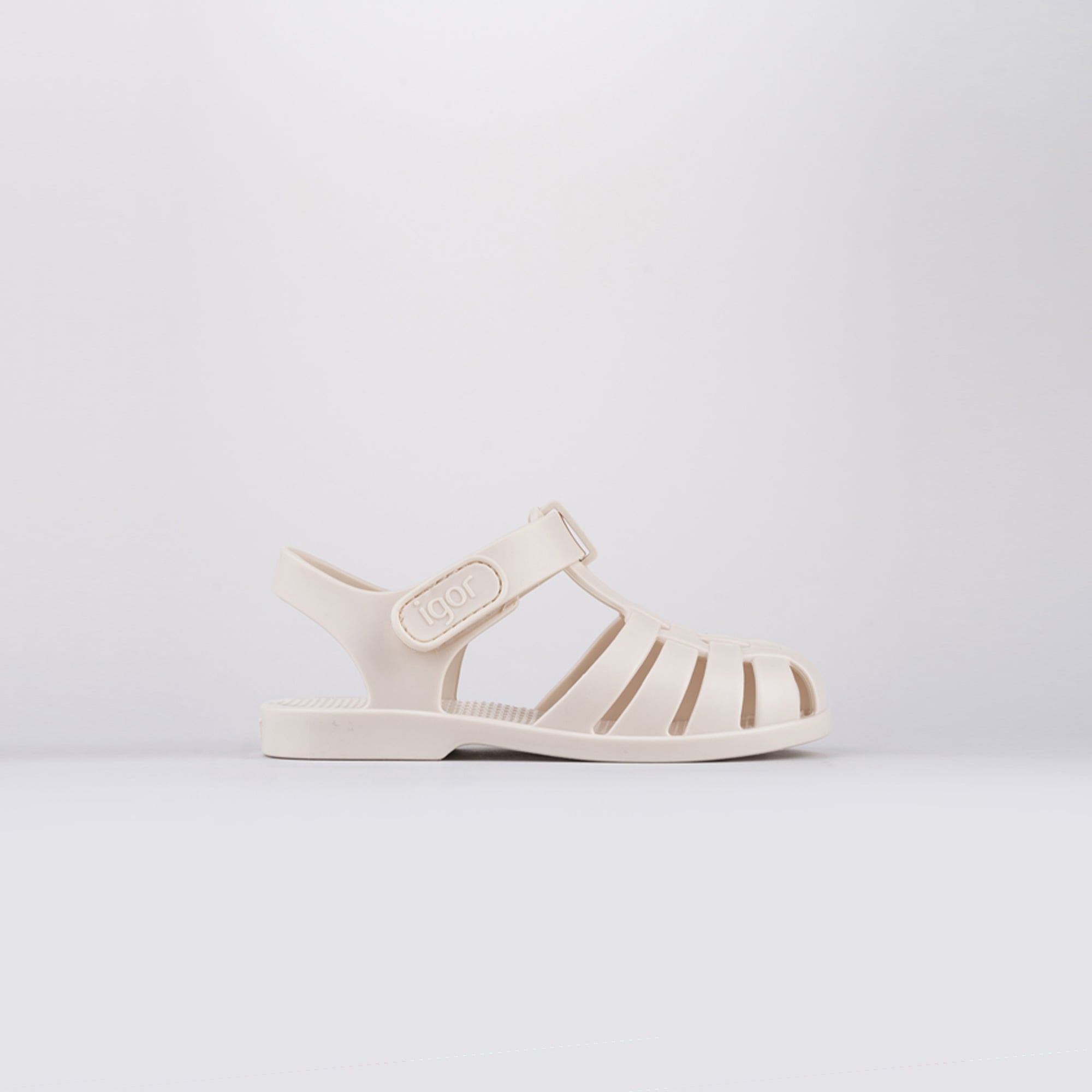 Igor Clasica Çocuk Krem Sandalet, yazın vazgeçilmez ayakkabısı olarak çocukların konforunu ön planda tutar. Özel geliştirilen esnek ve hafif hammaddesiyle, her adımda rahatlık sunar. Kafes tarzı tasarımı, ayakların ön, yan ve arka kısımlarını dış etkenlerden korurken, kayışlı cırt bant detayı sayesinde kolayca giyilip çıkarılabilir. %50 geri dönüştürülmüş malzemeden üretilmiştir ve kir tutmayan dış yüzeyi ile pratik kullanım sağlar. Kaydırmayı önleyen tırtıklı tabanı, güvenliği artırır.