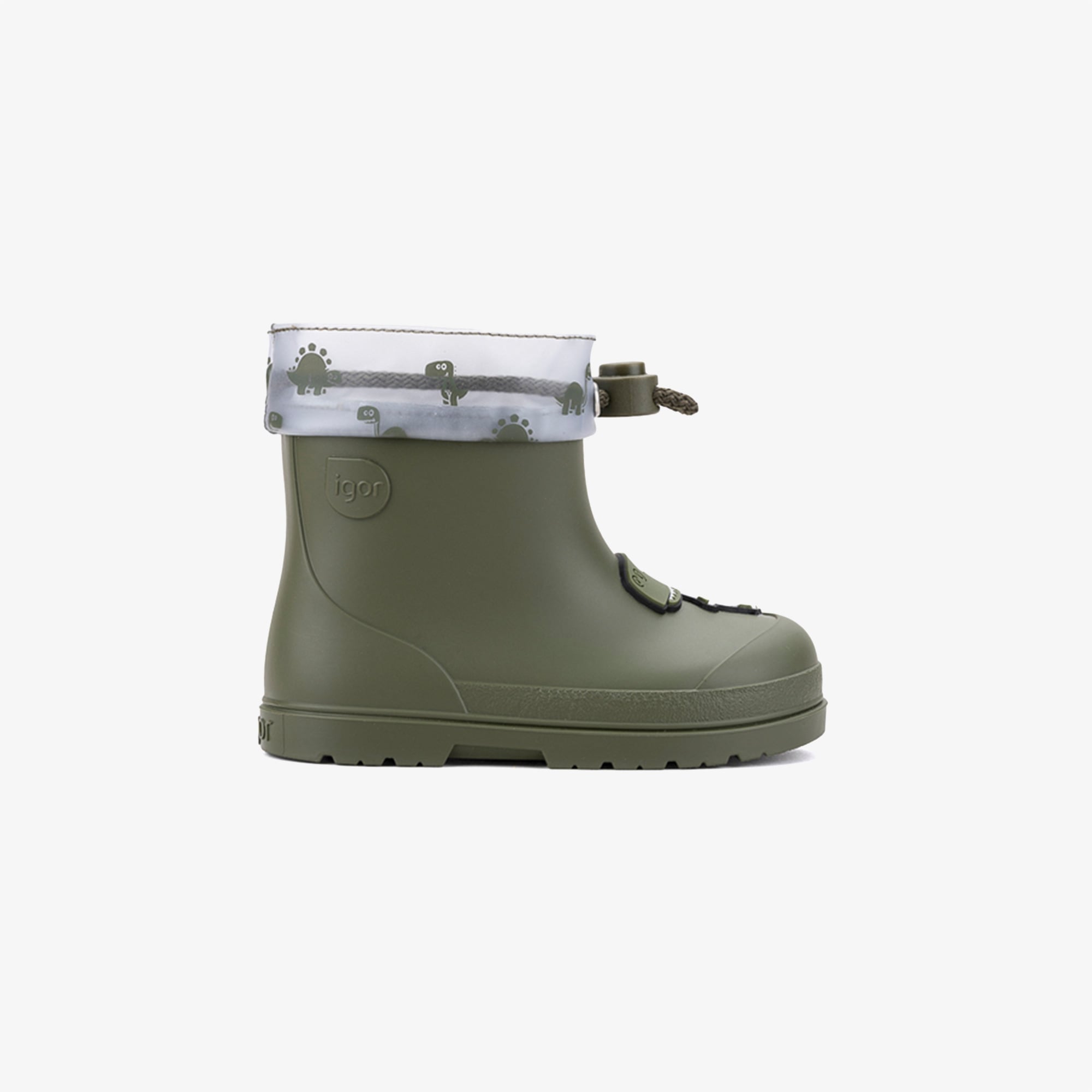 Igor Mendi Dino Borreguito Çocuk Haki Bot, macera dolu yağmurlu günlerde minik adımlarını neşeyle taşımak için tasarlanmış eğlenceli ve fonksiyonel bir dost. Koyu haki rengi ve sevimli dinozor desenleriyle hem sade hem canlı bir şıklık sunar. İçindeki yumuşak tekstil astarı ayağını nazikçe sararken, dışındaki su geçirmez yapıyla yağışlı havalar bile eğlenceyi kesintisiz kılar. Sen oyun saatinden ödün vermek istemediğin her an, bu bot yanında.
