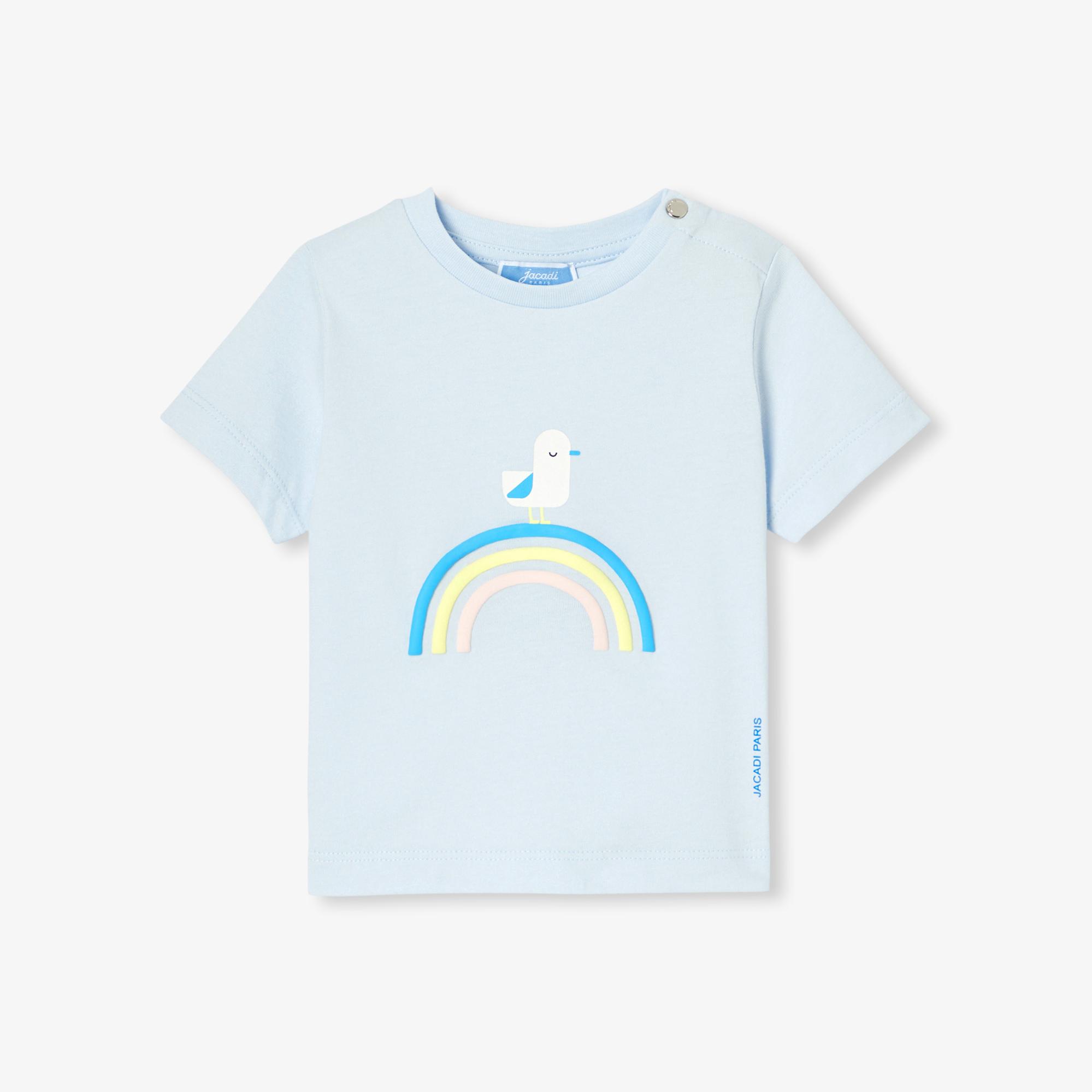 Parlak mavi organik pamuk üzerine basılmış gökkuşağı ve martılarla, bu bebek erkek tişörtünün renkli, geometrik bir mevsimi müjdelediğine şüphe yok. Denim şortlar veya desenli şortlarla kolayca kombinlenebilen bir temel parça olan bu tişört, küçük oğlunuza tüm yaz aktivitelerinde eşlik edecektir. - %100 Pamuk - Organik pamuktan kısa kollu bebek tişörtü - Orijinal desen - Omuzdan çıtçıtlı açılış - Organik tarımdan etiketlenen pamuk - Eğer iki beden arasında kalıyor ve karar veremiyor iseniz, her zaman bir büyük bedeni sipariş ediniz