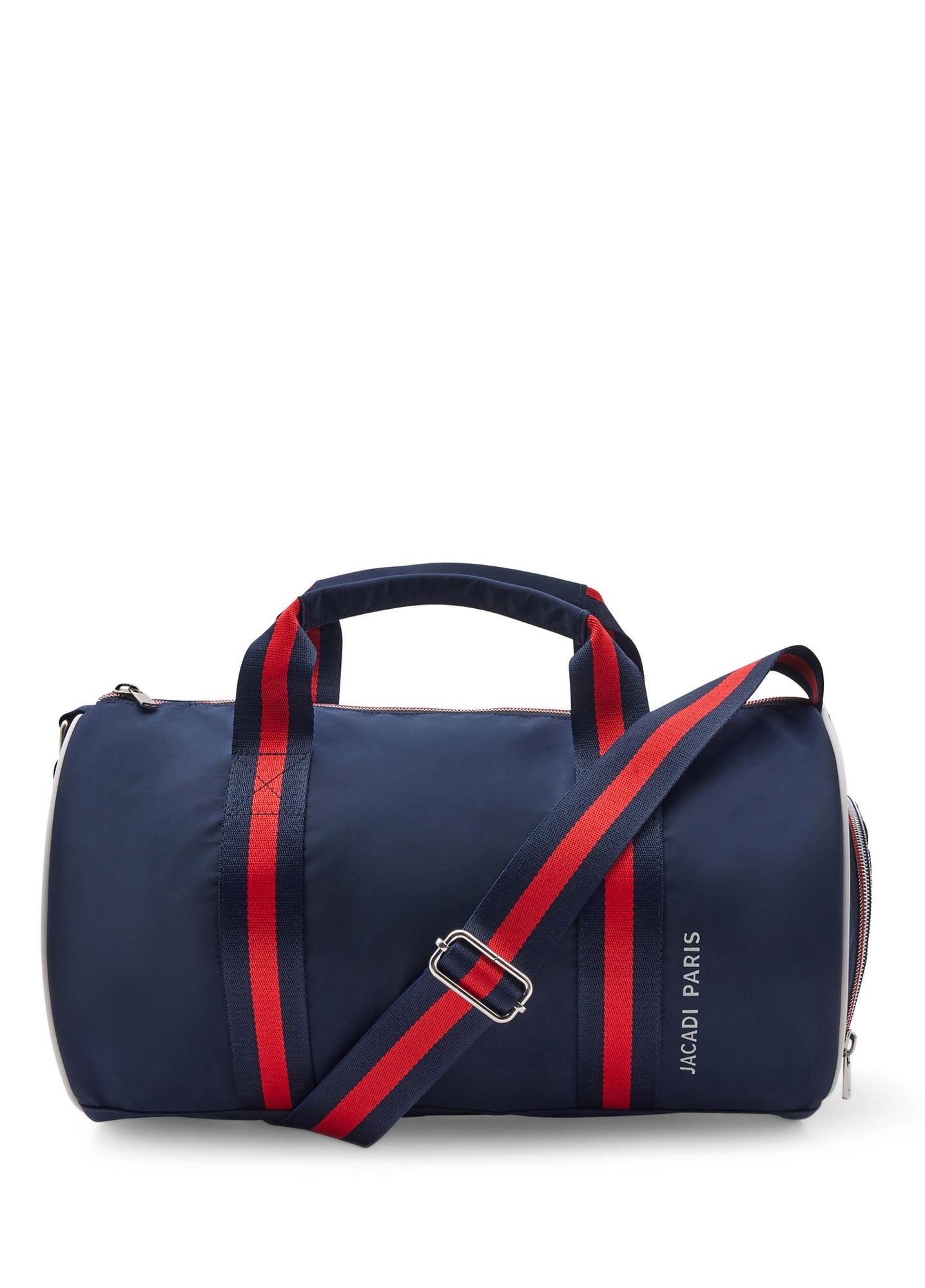 %100 Poliamid, Bakımı kolay poliamid, Çizgili grosgrain omuz askısı ve kulplar, Esprit Jacadi baskısı, Büyük fermuarlı cep, Özel ayakkabı cebi.