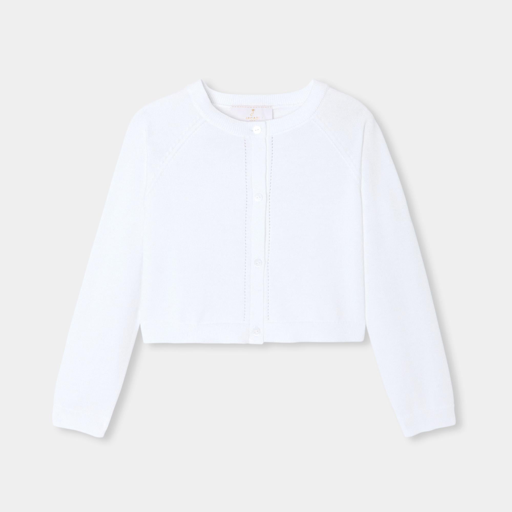 Jacadi'nin tören elbiseleri koleksiyonunu sergilemek için kısa kesilmiş bu kız çocuk hırkası organik pamuktan yapılmıştır. Ajurlu kollar ve düğme iliklemesiyle, büyük günde kıyafetine mükemmel bir son dokunuş katar. - %100 Pamuk - Organik pamuk ve jarseden kız çocuk hırkası - Kol deliklerinde ajurlu detaylar - Sedef düğme iliklemesi - Organik tarımdan etiketlenen pamuk - Eğer iki beden arasında kalıyor ve karar veremiyor iseniz, her zaman bir büyük bedeni sipariş ediniz