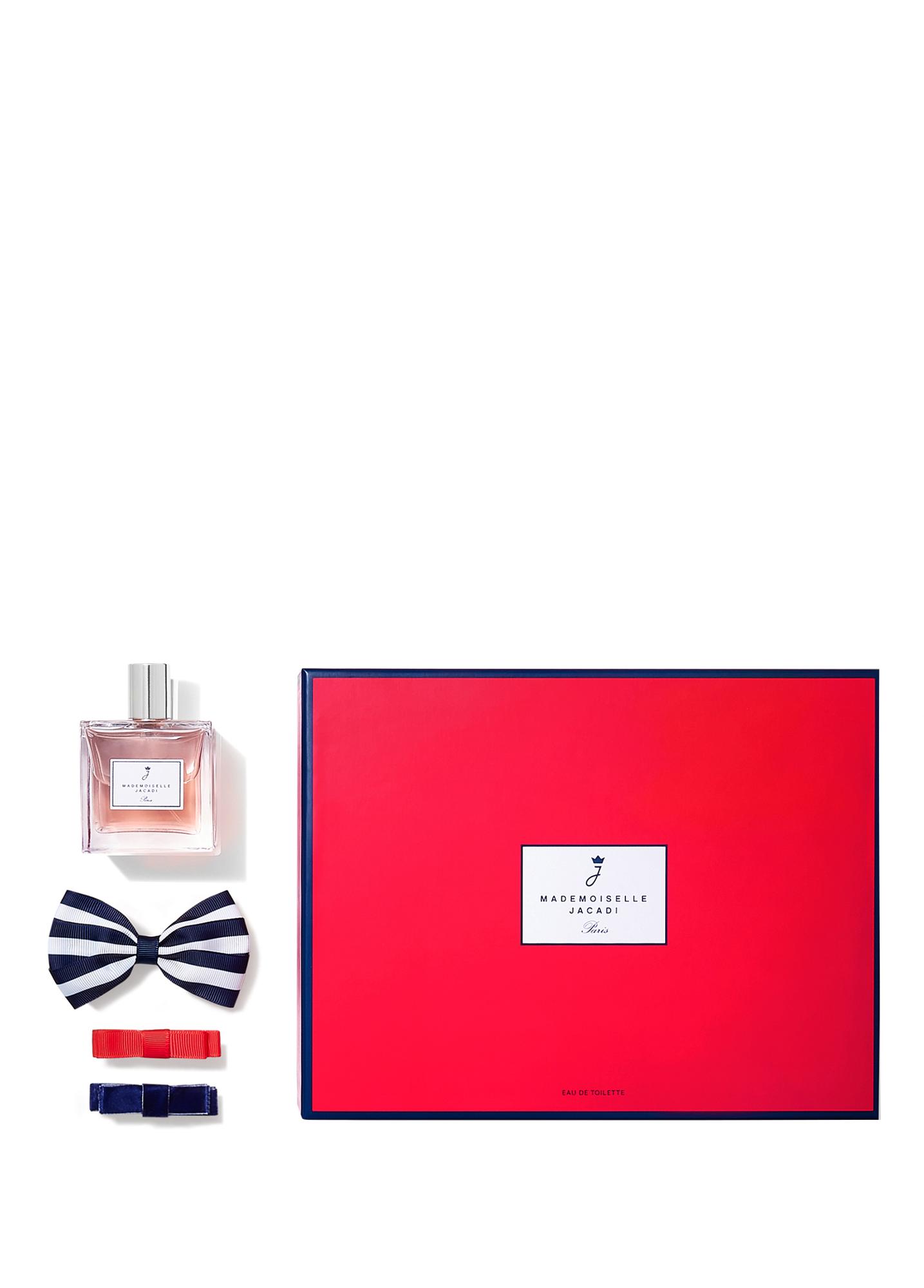 JACADI dedi ki çapkın genç bayanlar için mükemmel bir set. Parfüm ve saça takılacak üç aksesuardan oluşan bu sevimli set, kıyafeti tamamlamak ve hoş kokulu bir dokunuş katmak için mükemmel bir hediye. Peki küçük mü yoksa büyük düğüm mü? Kırmızı mı mavi mi?. Kendisine en uygun olanı seçmek ona kalmış!. Paket İçeriği: 100ml Parfüm. – Fiyonk Saç Tokası. – 2’li Klips Toka. - 3 yaşından itibaren Eau de Toilette .- Fransa'da üretilmiştir .- Vegan formülü .- Yuka derecesi: 50/100 Kapasite: 100 ml.. Kullanım Talimatı: Matmazel Jacadi Paris Eau de Toilette çocuğun cildine küçük dokunuşlarla uygulanır. Gözlerle temasından kaçının. Denetimsiz olarak çocukların erişebileceği yerlerde bırakmayın. Ayrıca yorganı veya kıyafetleri de parfümleyebilirsiniz. 36 aydan küçük çocuklar için uygun değildir. Koku notaları: Koku ailesi: Narenciye/Taze Üst notalar: Frenk üzümü, Ahududu, Mandalina Kalp notaları: Vadi zambağı, Şeftali, Yasemin Temel notalar: Kediotu, Vanilya, Misk İçindekiler: Alkol Denat., Aqua (Su), Parfüm (Koku) ), PPG 26- Buteth -26, PEG-40 Hidrojene Hint Yağı, Etilheksil Salisilat, Butil Metoksidibenzoilmetan, Limonen, Sitronellol, Dietilheksil Siringuilidenemalonat, Linalool, Kumarin, Heksil Cinnamal, Hidroksisitronellal, Geraniol, Alfa-İzometil İyonon, Farnesol, CI 14700 ( Kırmızı 4), CI 42090 (Mavi 1).