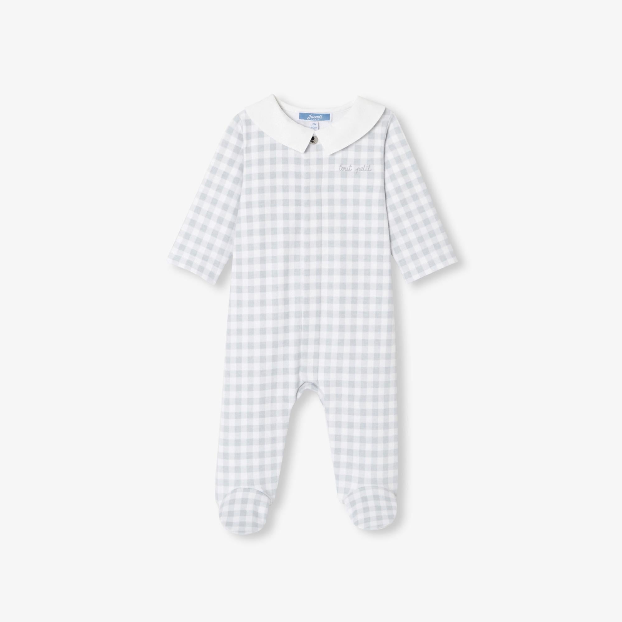 Jacadi Paris Yenidoğan Erkek Bebek Poplin Yaka Kareli Tulum