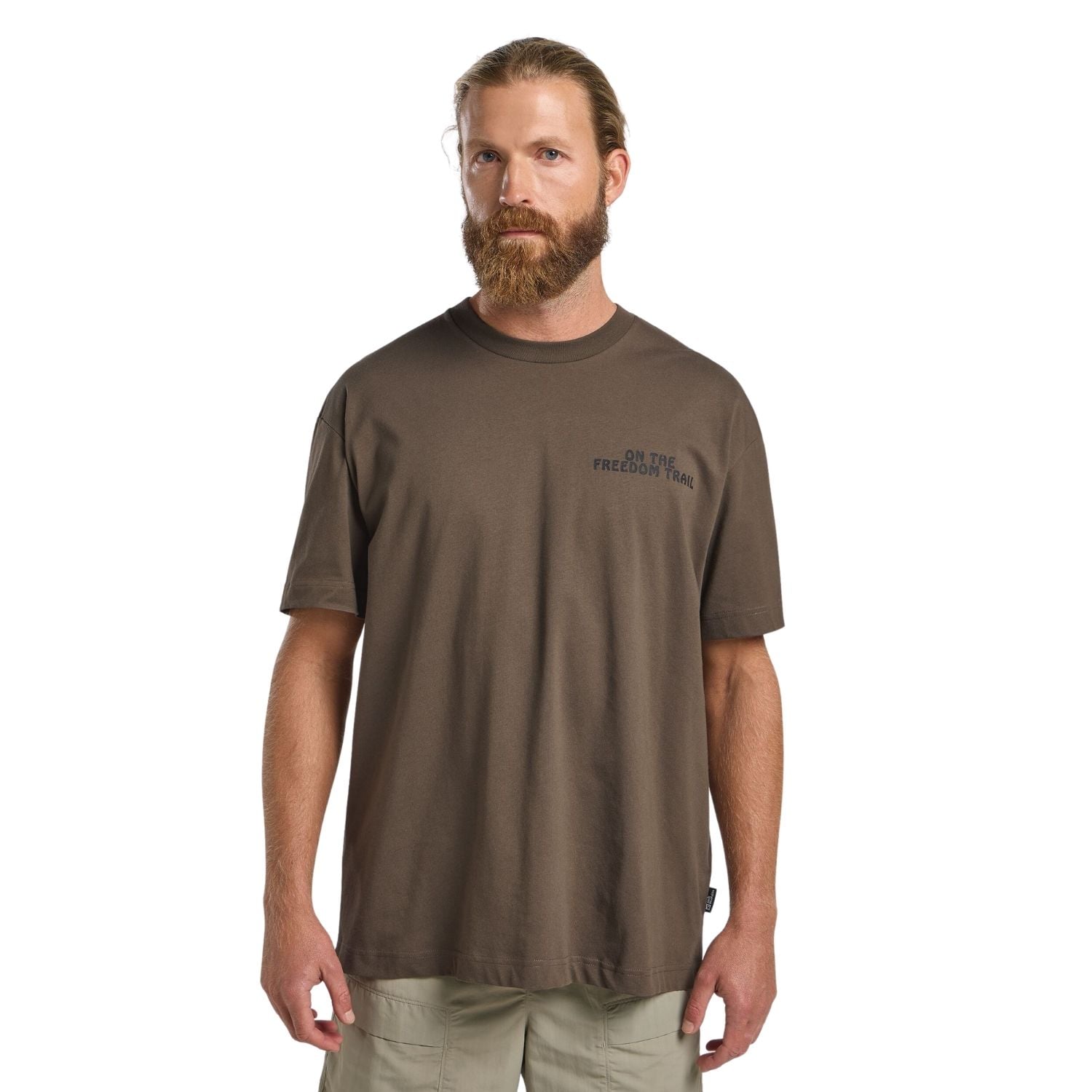 TRAILBLAZER TEE, organik pamuktan üretilmiş yumuşak ve rahat bir tişörttür. Nefes alabilir yapısı ve dağ temalı baskısı ile konforlu bir günlük kullanım sunar.