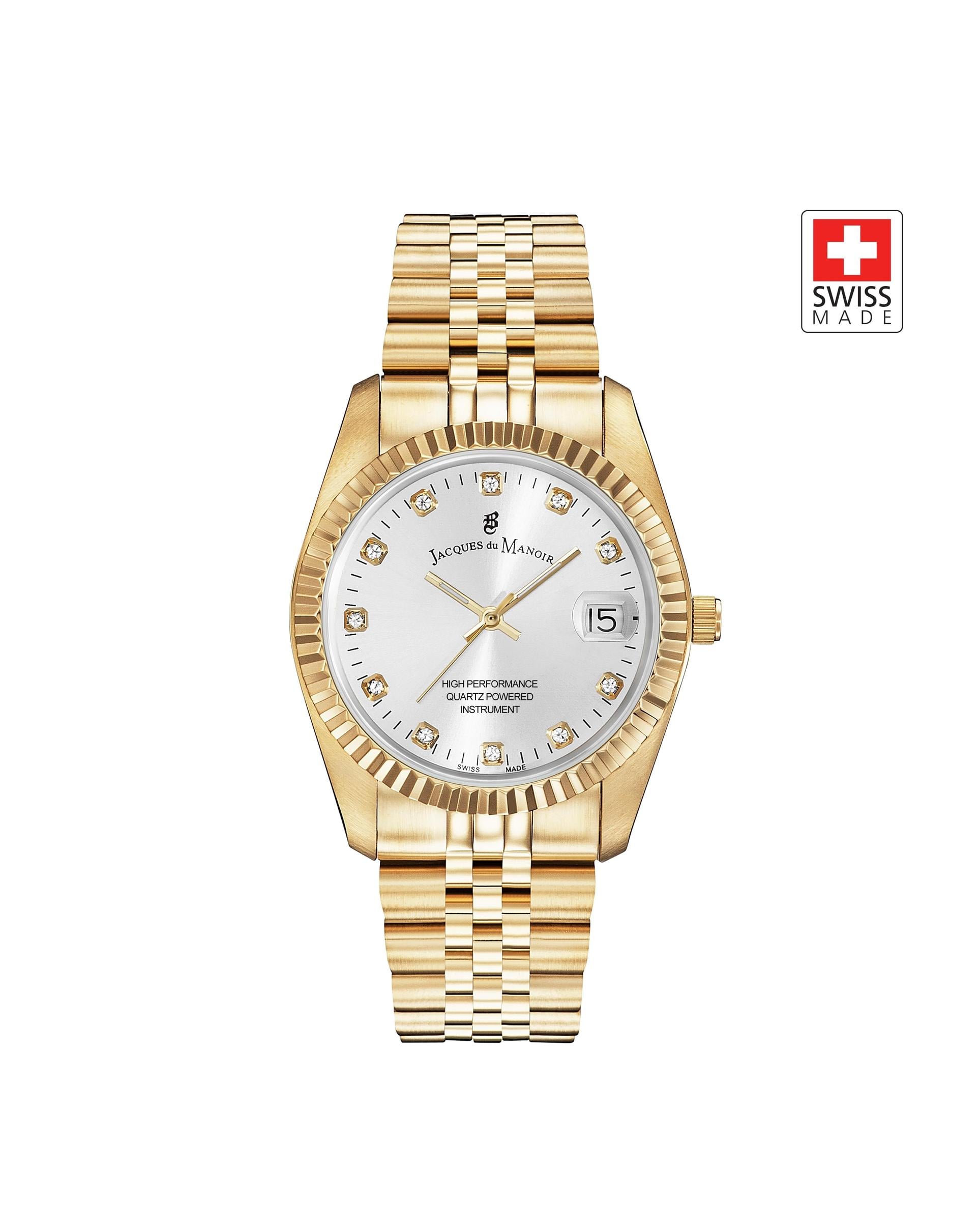 Kasa Çapı: 36 mm - Kasa Şekli: Yuvarlak - Kasa Materyali: Çelik - Kasa Rengi: Altın Rengi - Kordon Materyali: Çelik - Kordon Rengi: Altın Rengi- Kadran Rengi: Gümüş Tonu - Kadran Işığı: Yok - Taş: Var - Çalışma Şekli: Analog - Teknolojisi: Quartz - Takvim: Var - Kronometre: Yok - Alarm: Yok - Cam Özelliği: Mineral - Özellik: Swiss Made - Su Geçirmezlik: 5 ATM - Garanti Süresi: 2 yıl - Cinsiyet: Kadın
