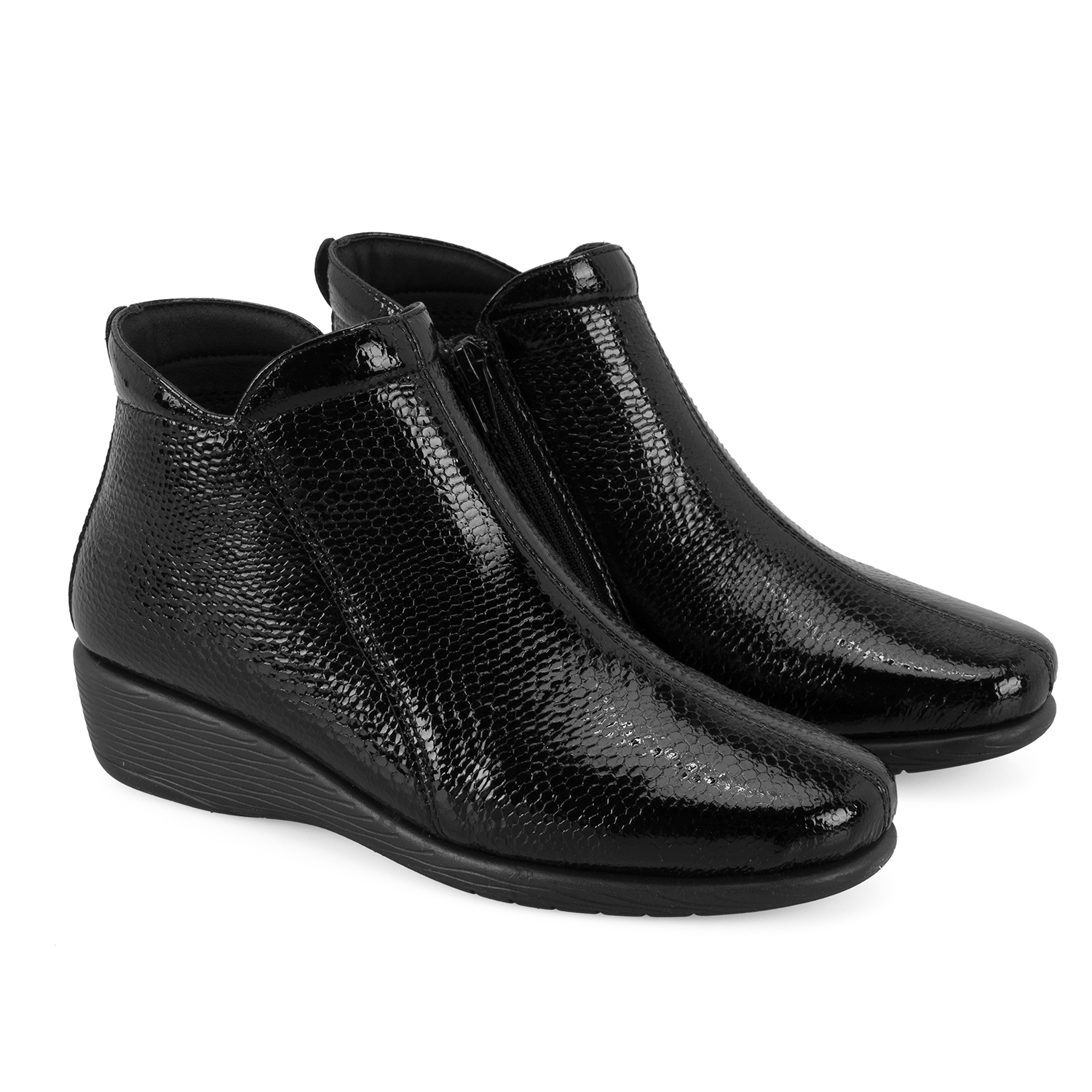 %100 baskılı deri, deri iç tabanlı, tekstil astarlı, kauçuk tabanlı, içten fermuarlı kadın DesaComfort bot. Taban yüksekliği 3 cm %100 Dana derisinden üretilmiştir.-%100 baskılı deri, deri iç tabanlı, tekstil astarlı, kauçuk tabanlı, içten fermuarlı kadın DesaComfort bot. Taban yüksekliği 3 cm %100 Dana derisinden üretilmiştir.