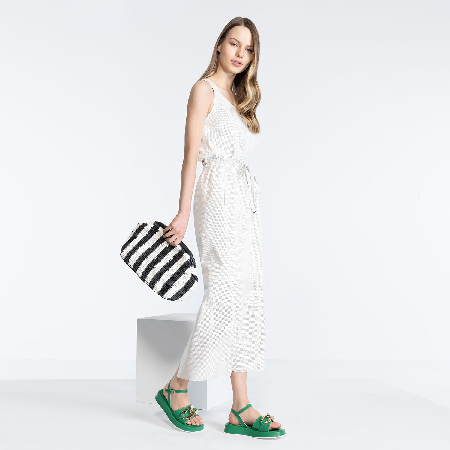 %100 koyun derisi olup, astarlı çalışılmıştır. Yüksek belli çalışılmıştır. Beli lastikli çalışılmıştır. Belde ayalanabilir ucu metal aksesuarlı kemer detayı vardır. Arkada yırtmaç detayı bulunmaktadır. Deri üzerine özel delikli perfore çalışması uygulanmıştır. Yandan girişli iki adet cebi mevcuttur.. M beden için bel 67 cm, arka orta boy ölçüsü 91,3 cm.-%100 koyun derisi olup, astarlı çalışılmıştır. Yüksek belli çalışılmıştır. Beli lastikli çalışılmıştır. Belde ayalanabilir ucu metal aksesuarlı kemer detayı vardır. Arkada yırtmaç detayı bulunmaktadır. Deri üzerine özel delikli perfore çalışması uygulanmıştır. Yandan girişli iki adet cebi mevcuttur.. M beden için bel 67 cm, arka orta boy ölçüsü 91,3 cm.