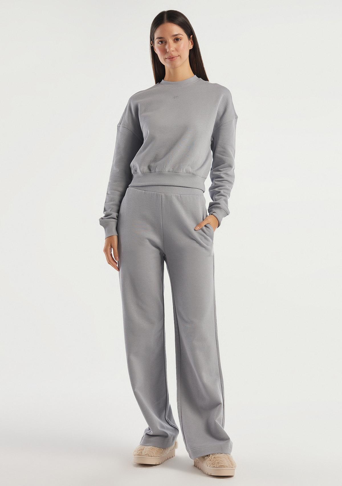 Kadın Açık Gri %100 Koton Rahat Kalıp Logolu Sweatshirt