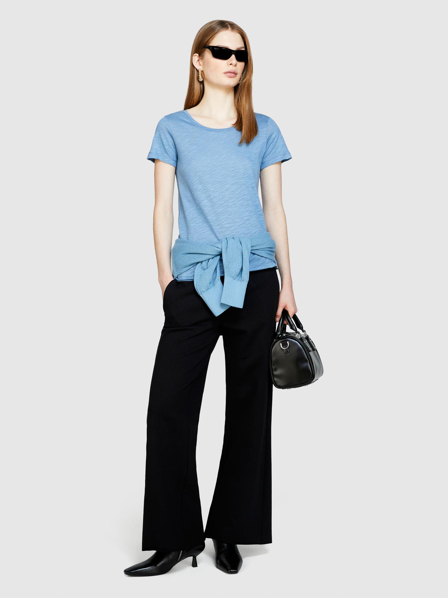 Kadın Açık Mavi Pamuk Modal Karışımlı Normal Kalıp Bisiklet Yaka T-Shirt