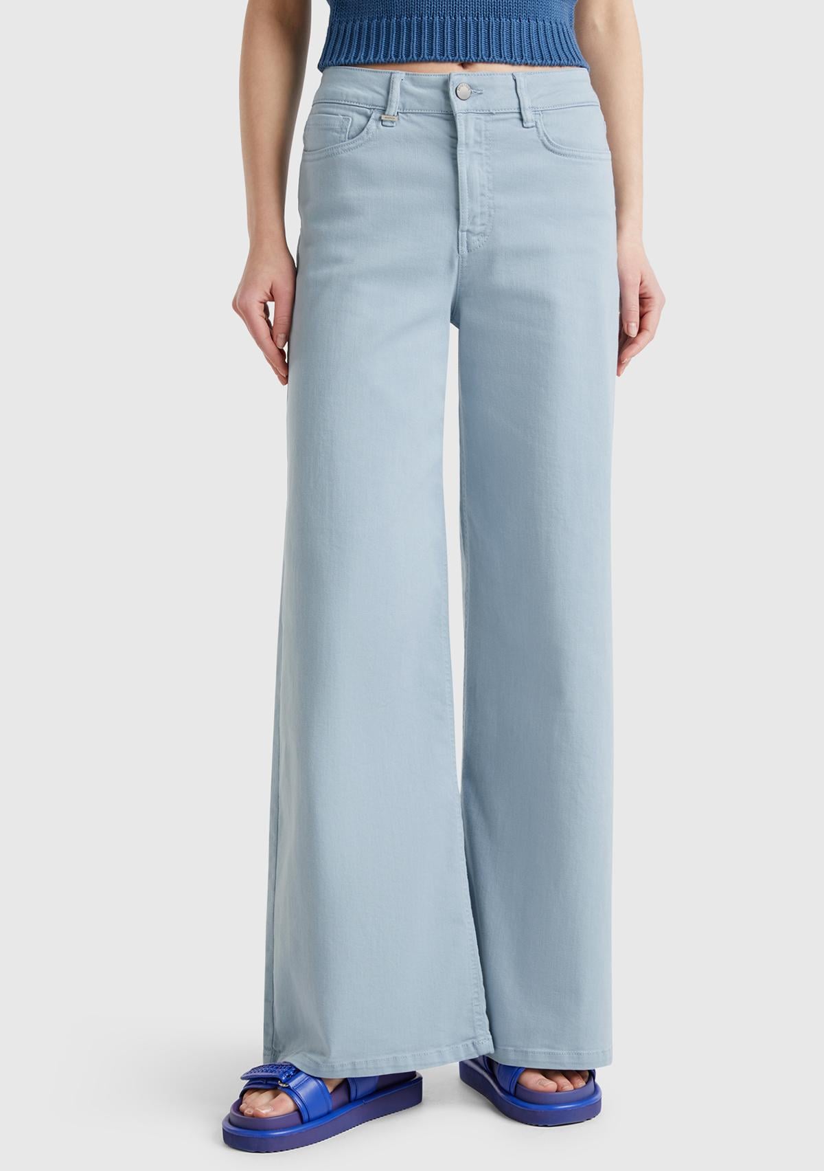 Kadın Açık Mavi Streç Pamuklu Arkası Logo Etiketli Bol Kesim Pantolon