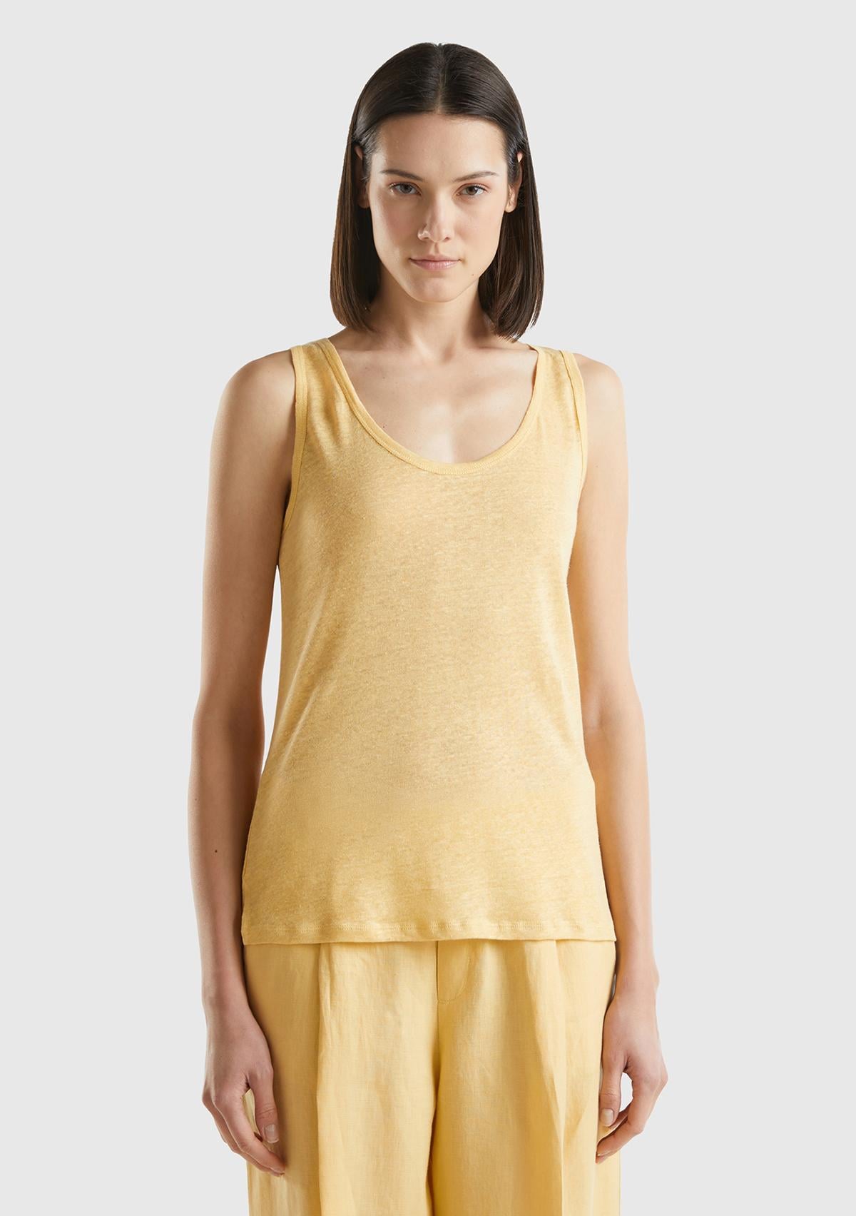 Kadın Açık Sarı %100 Keten Rahat Kalıp Kalın Askılı Atlet