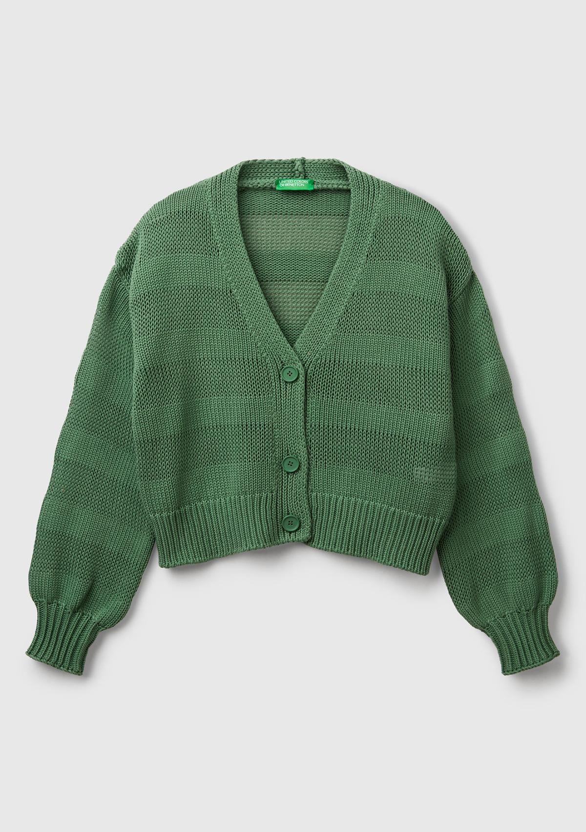 Kadın Açık Yeşil %100 Pamuk Şerit Efektli Düşük Omuzlu Örme Relax Fit Hırka