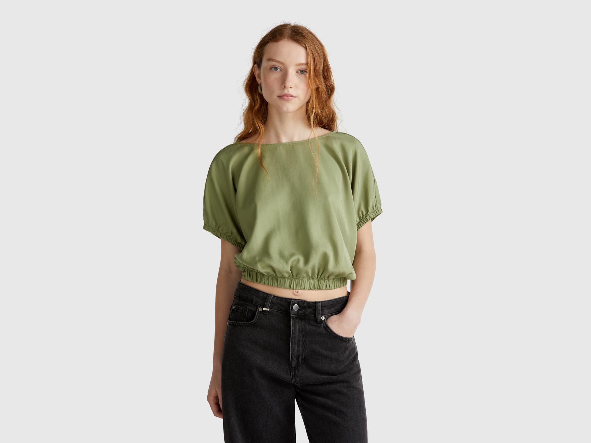 Kadın Adaçayı yeşili %100 Liyosel Beli Lastikli Kimona Kol Bluz