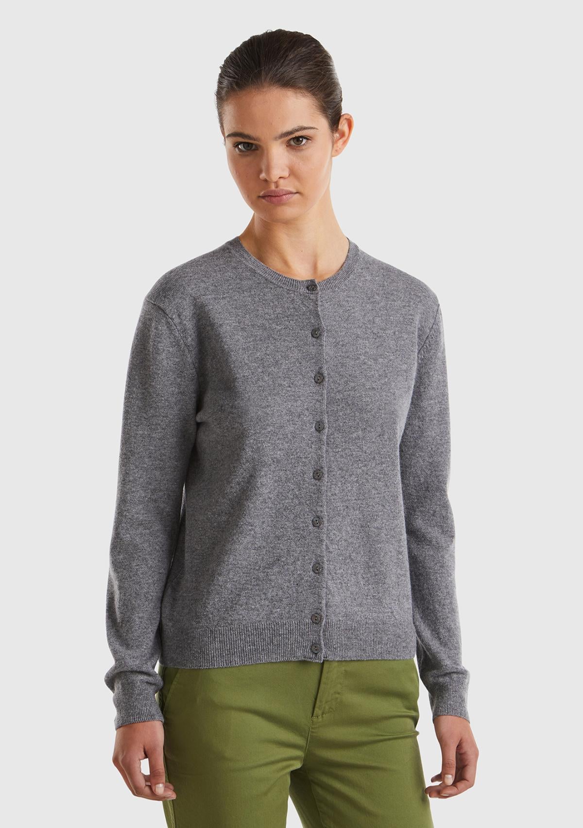 Kadın Antrasit Melanj Bisiklet Yaka %100 Merino Hırka. Koyun Yünü İçerir