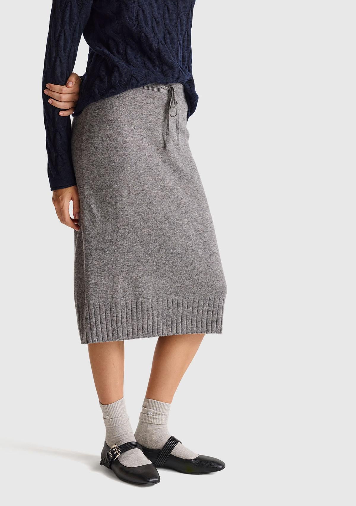 Kadın Antrasit Melanj Pamuk ve Yün Karışımlı Ribana Detaylı Bağcıklı Örme Etek