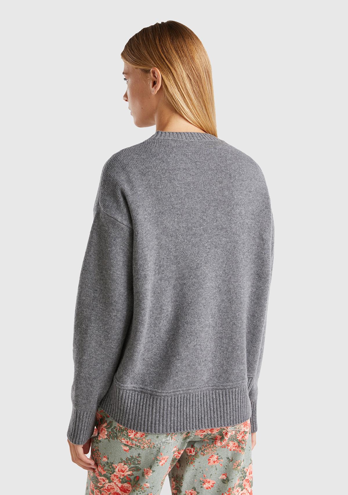 Kadın Antrasit Melanj Yün Karışımlı Alt Kısmı Geniş Bisiklet Yaka Kazak. Koyun Yünü İçerir