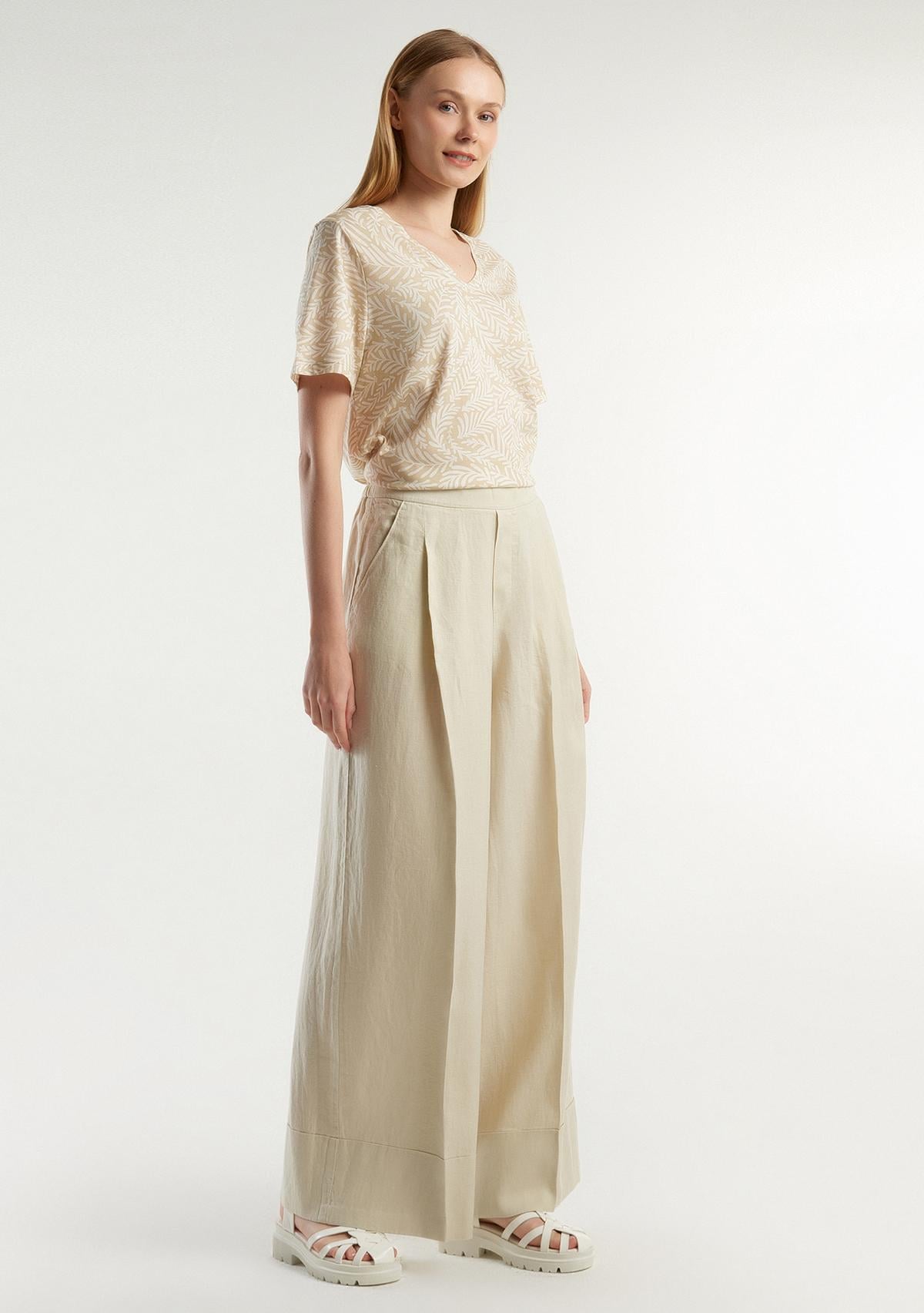 Kadın Bej %100 Keten Beli Lastikli Geniş Kesim Pantolon
