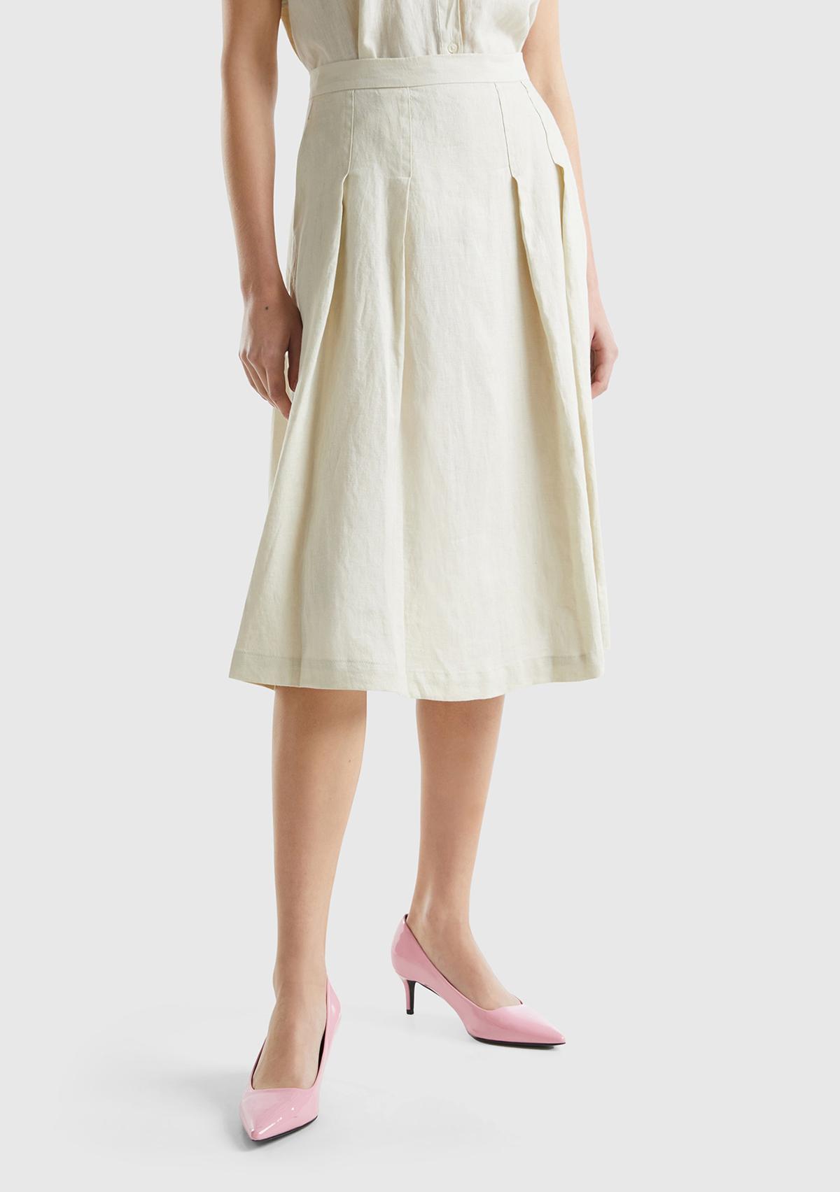 Kadın Bej %100 Keten Geniş Uzun Etek