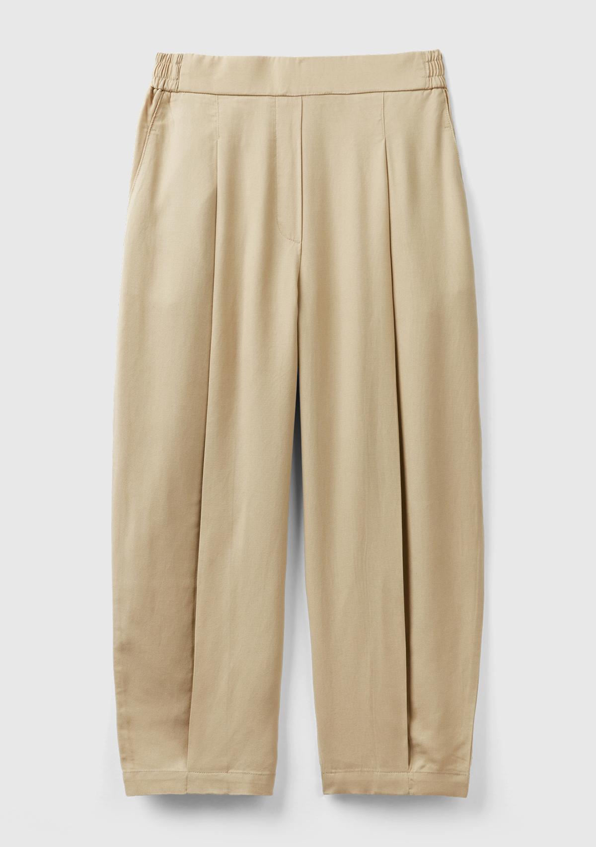 Kadın Bej %100 Liyosel Bol Kesim Beli Lastikli Pantolon